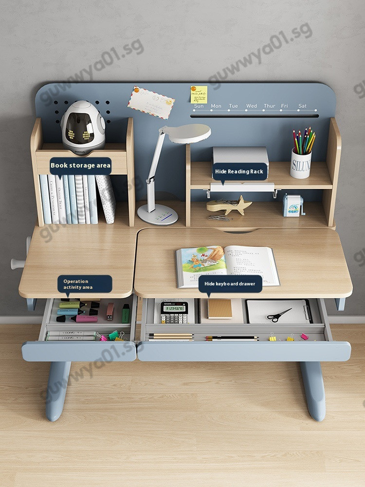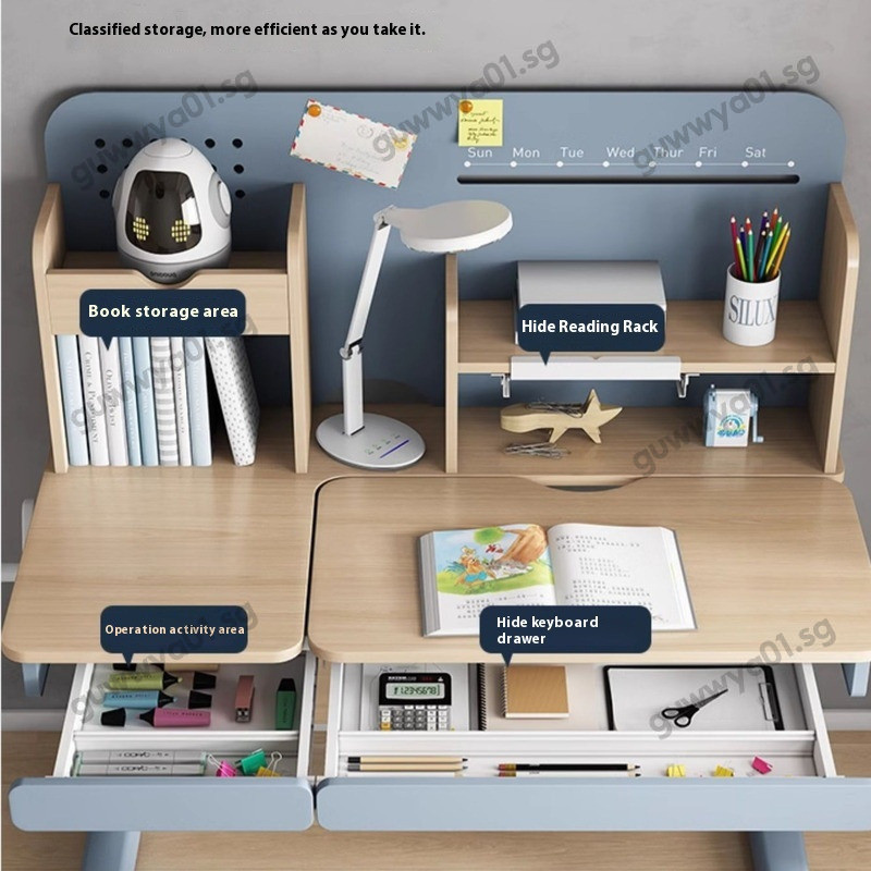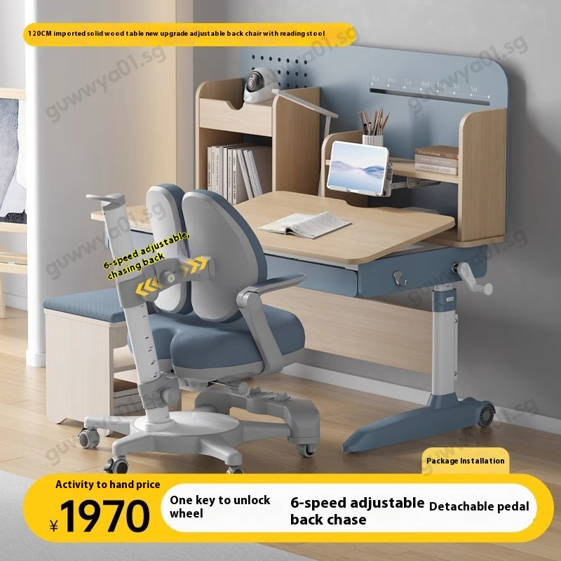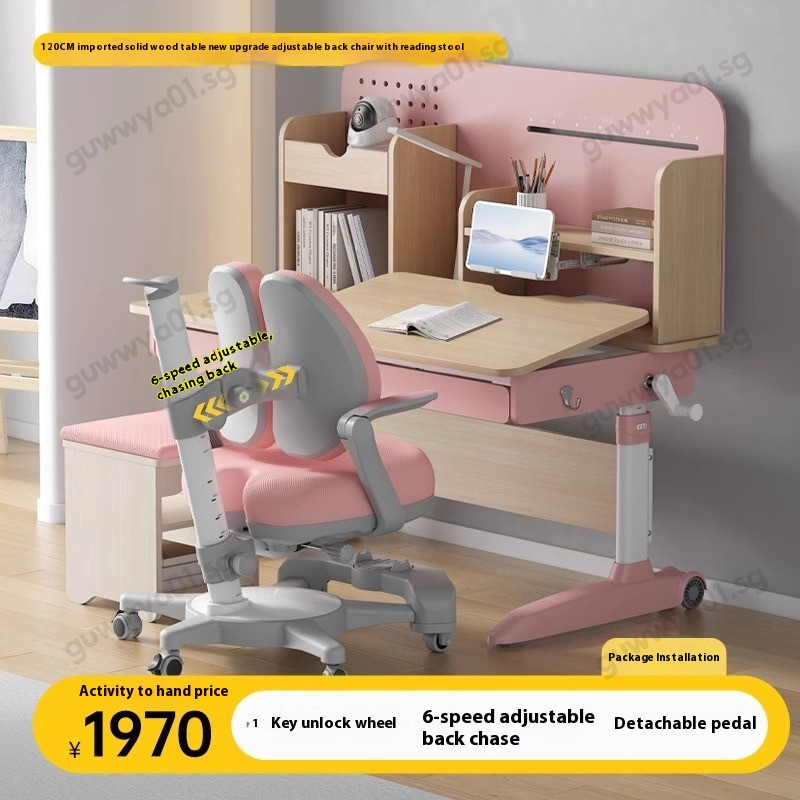 Study Table With Drawer Home Adjustable Desk And Chair, Small-Sized Student Solid Wood Desk