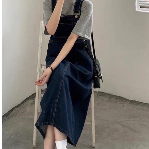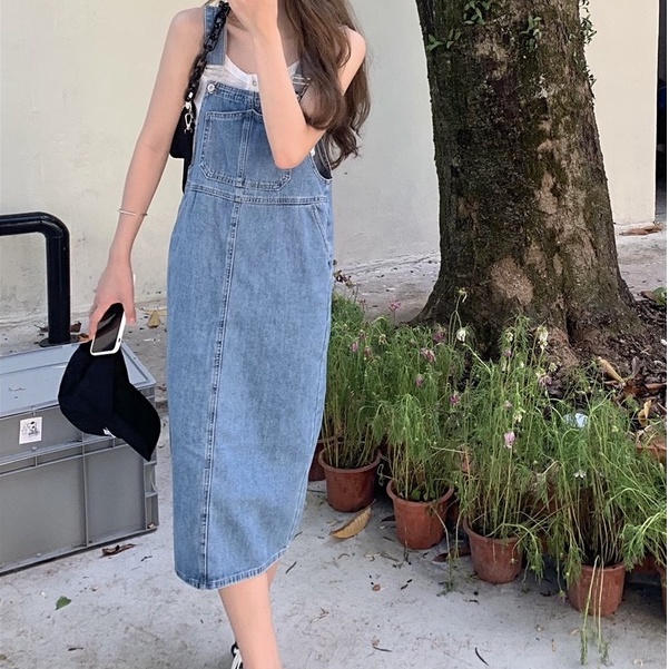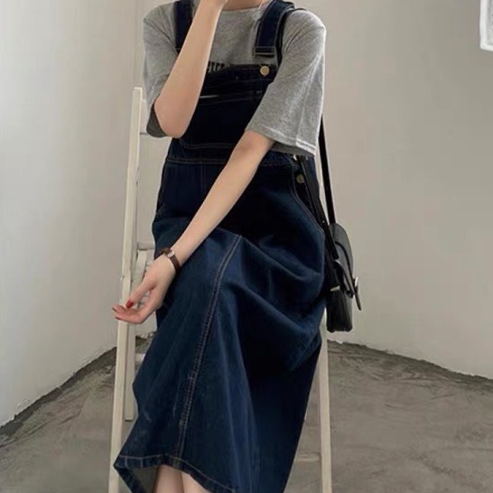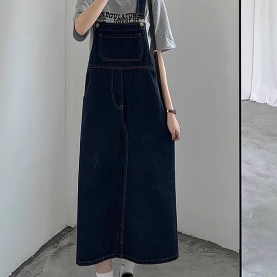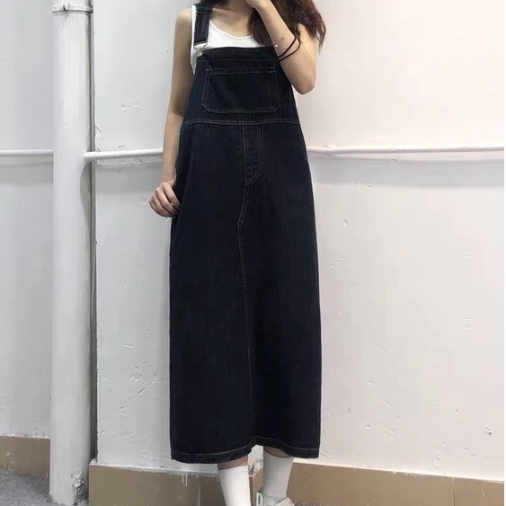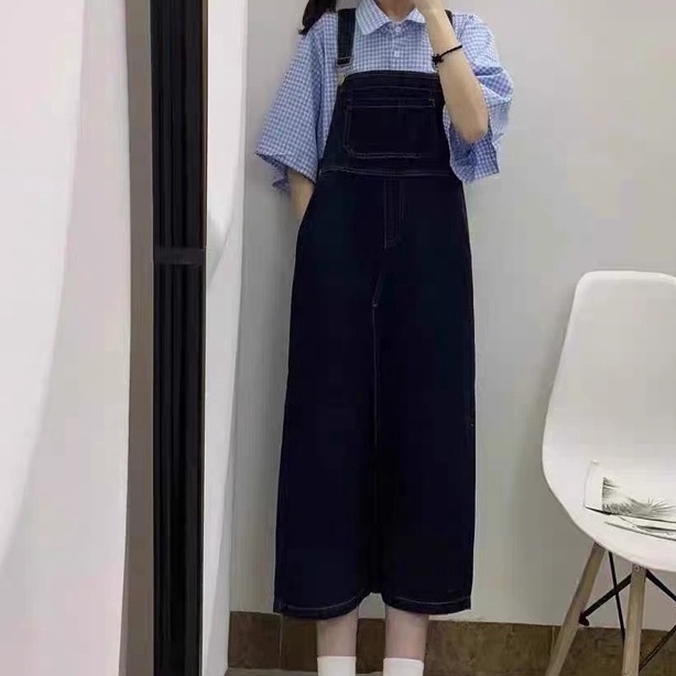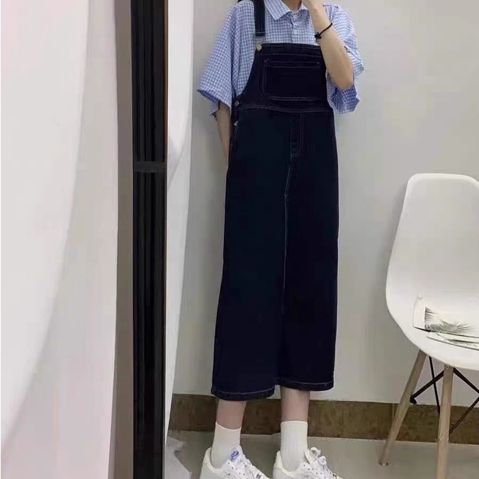 Stylish jean overalls, black and blue two-tone jean overalls_y2