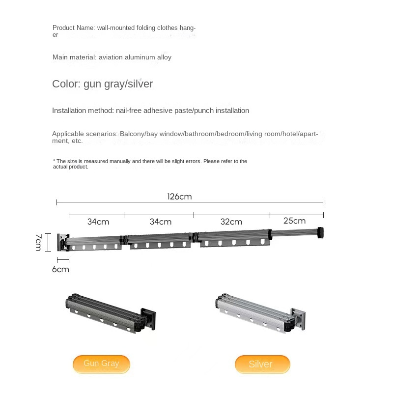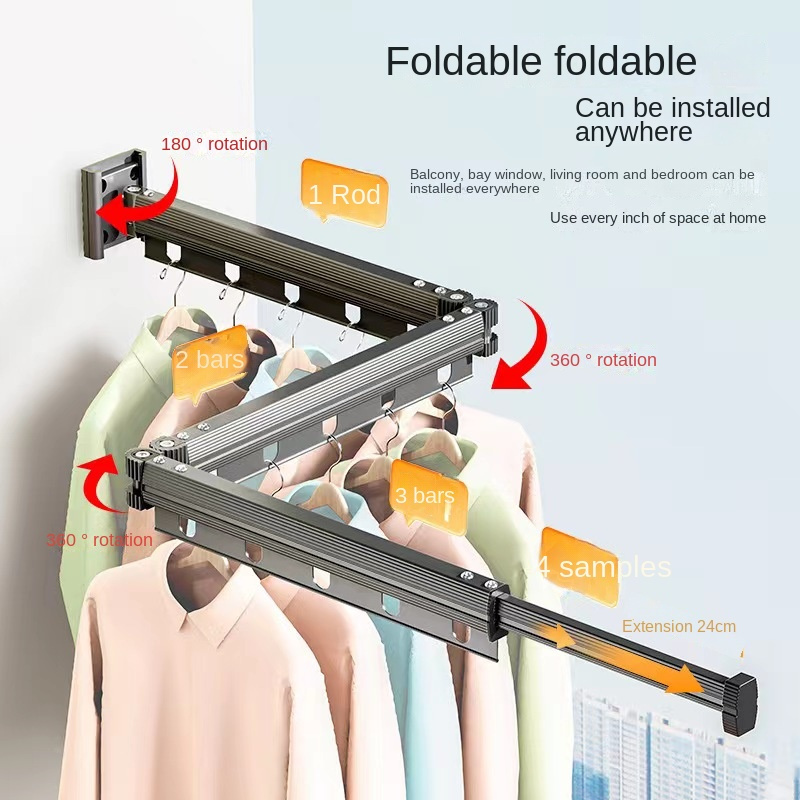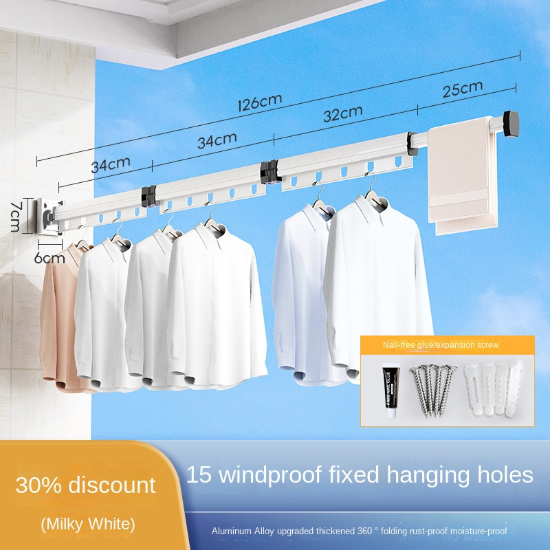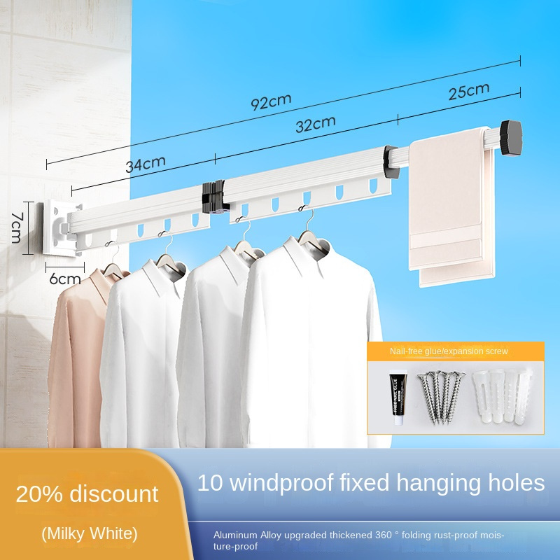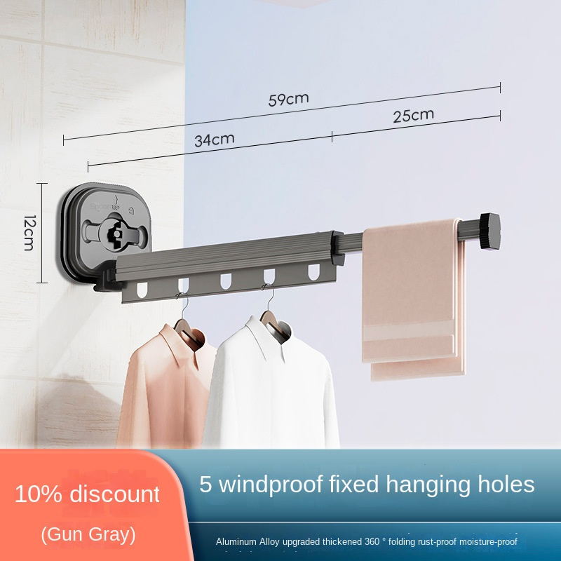 Suction Cup Hanger Foldable Clothes Drying Rack Household Balcony Window Perforation-Free Cool Clothes Rod Invisible Retractable Clothes Drying