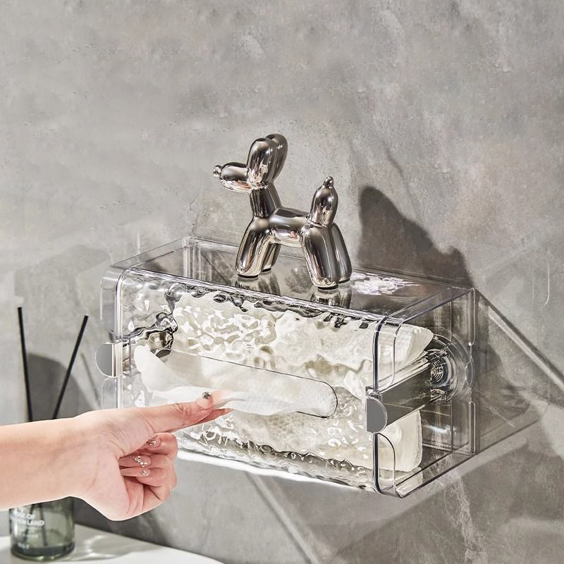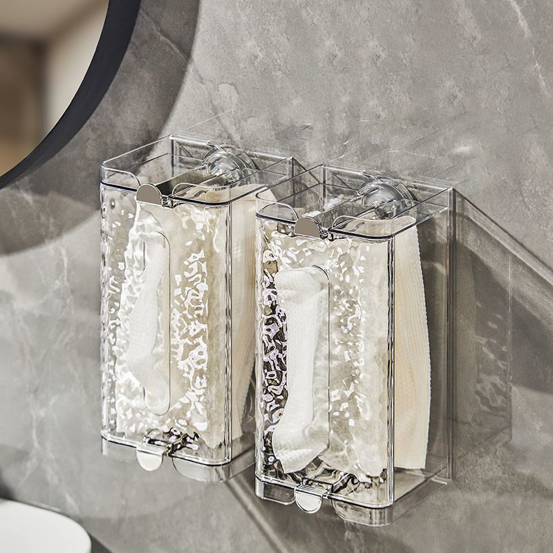 Suction Cup Tissue Holder Box Wall-mounted No Drilling Transparent Bathroom Toilet Paper Box
