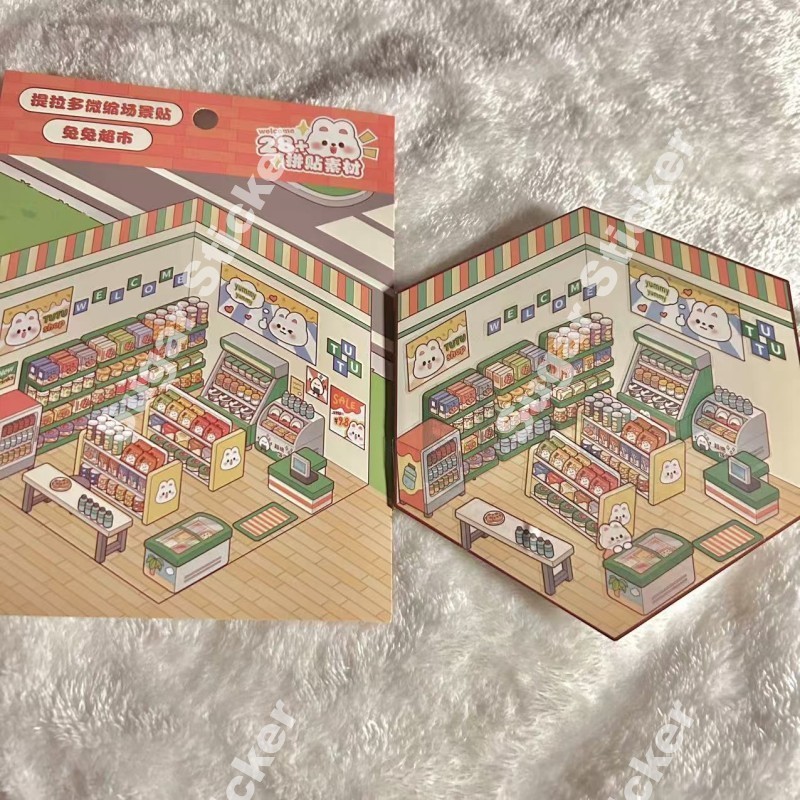 SugarSticker Bunny Supermarket Miniature Scene Sticker Cute Journal Stickers Waterproof Sticker Paper Scrapbooking Material Scrapbook Kit