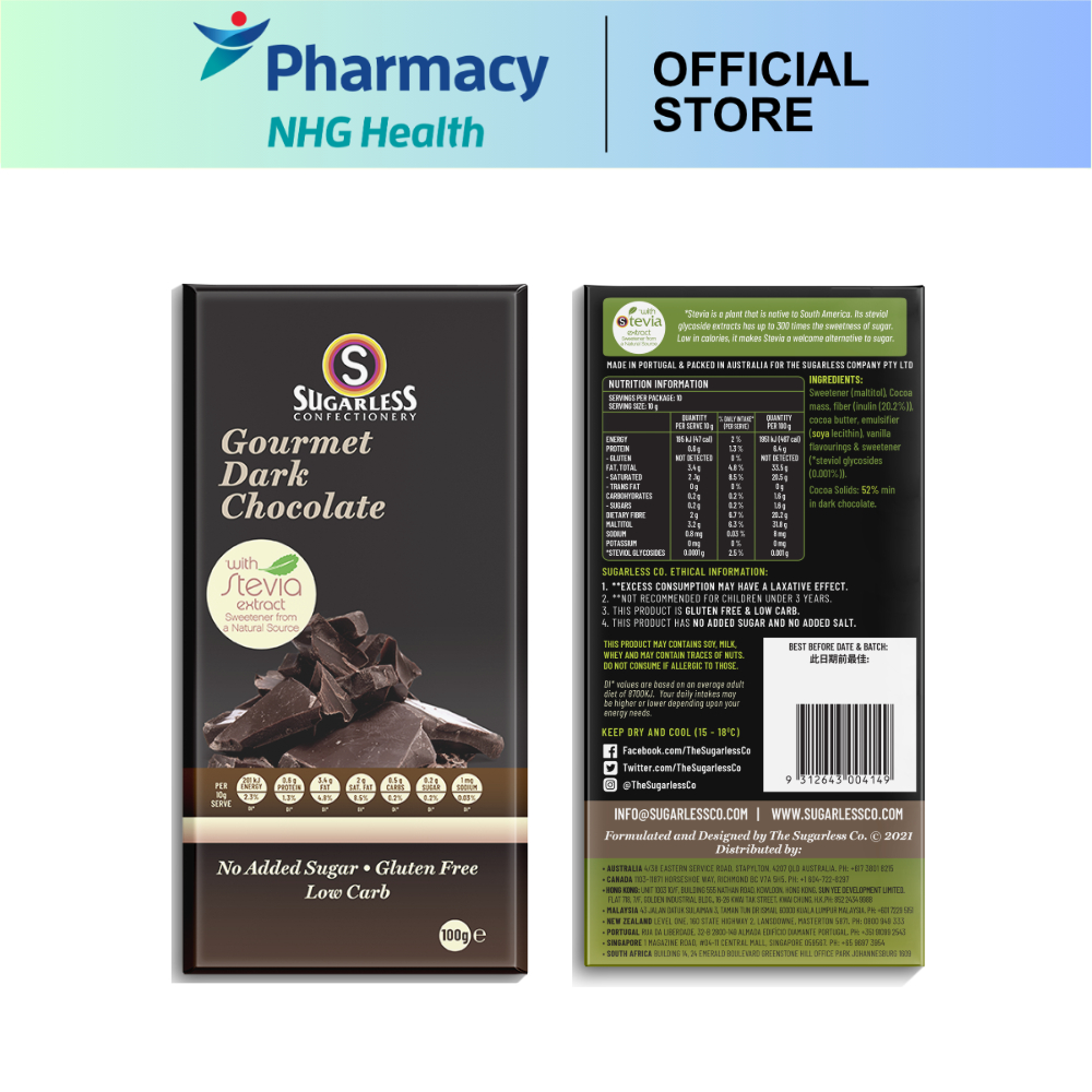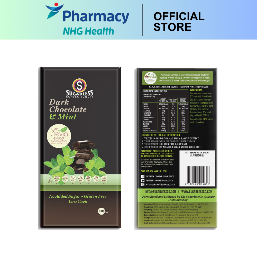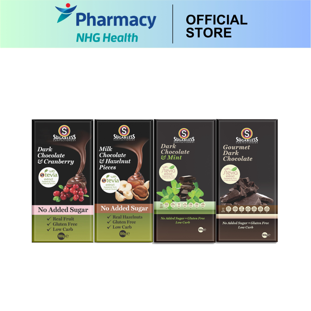 Sugarless Dark Chocolate & Cranberry/Chocolate & Mint/Milk Chocolate & Hazelnut/Gourmet Dark Chocolate - 100g