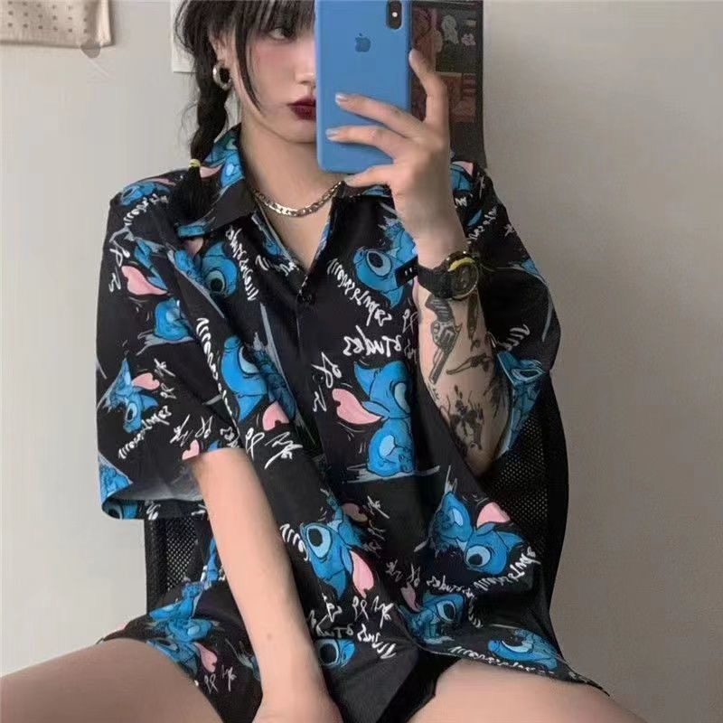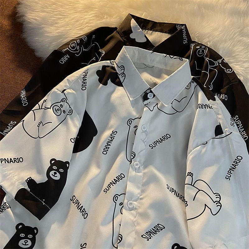 Summer Korean Fashion Women's Shirt New Cartoon Bear Loose Graffiti Half Sleeve Trendy One Piece Anime Short Sleeve Naruto Print T-shirt