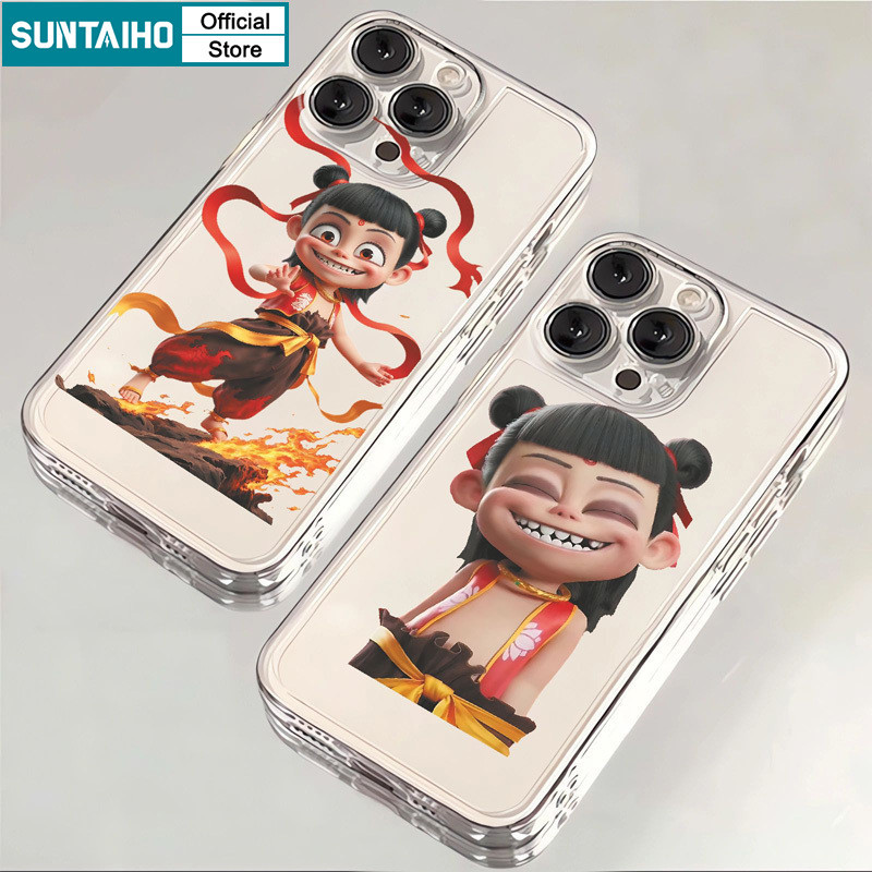 Suntaiho Funny Casing Cute Anime Nezha Pattern Couple Phone Case for Iphone 11 12 13 14 15 16 Pro Max IP 7 8 Plus Iphon X XS XR Xs Max TPU Soft Premium Shockproof Back Cover