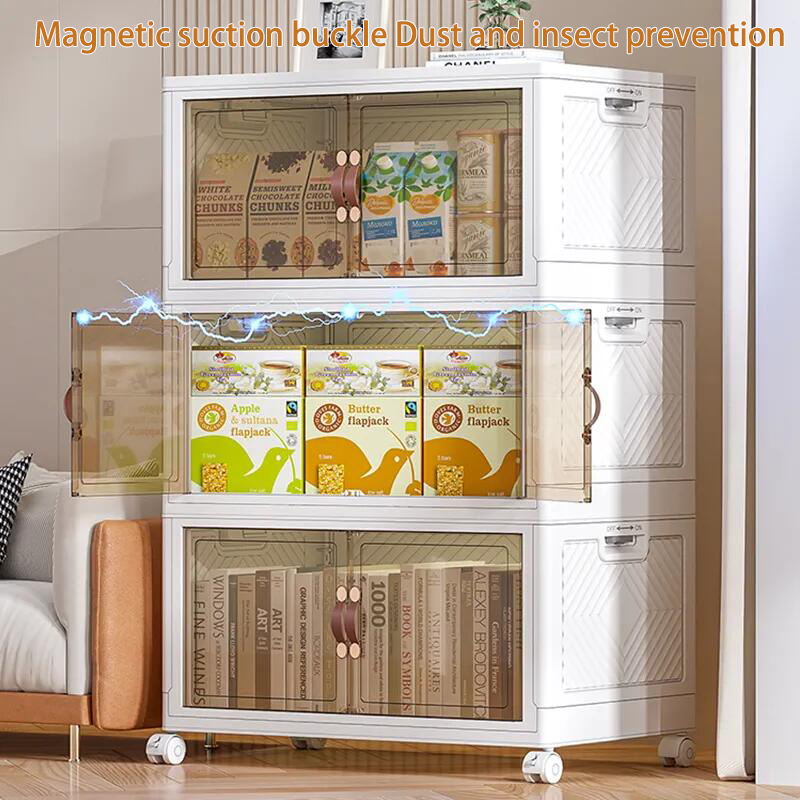 Super Big Folding Storage Box Cabinet Wardrobe Transparent Double Door Foldable Home Clothes Snacks Storage Cabinet
