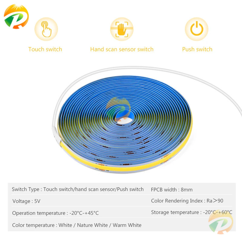 Super Bright USB DC 5V COB LED Strip Light 320leds/m with Hand Scan / Dimmable Touch Sensor Switch/ Push Switch 1m 2m 3m 4m 5m