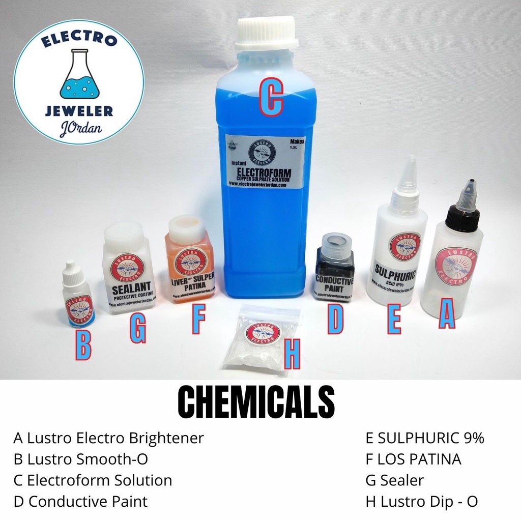Super Delux 3 LITER Electroform Set. Complete Electroform Set. Turn anything to metal. Jewelry, Models,DIY, Gems