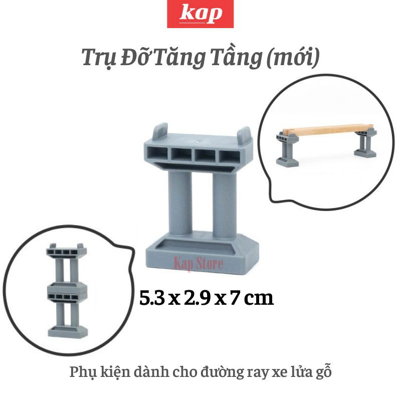 Support posts and buttons connecting 2 wooden train tracks, accessories for wooden train tracks