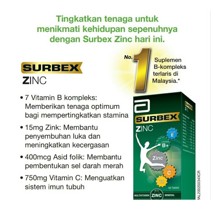 Surbex Zinc B-Plus Vitamin B Complex + Zinc for Stamina & Energy 30s