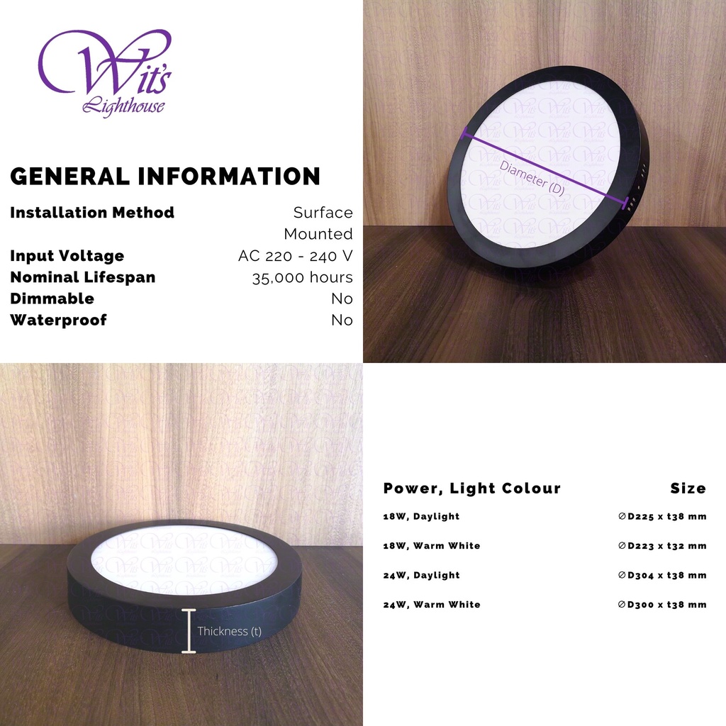 Surface Mounted LED Square Downlight Round Downlight Panel Light 18W 24W LED Ceiling Light Solid Aluminium Black Casing