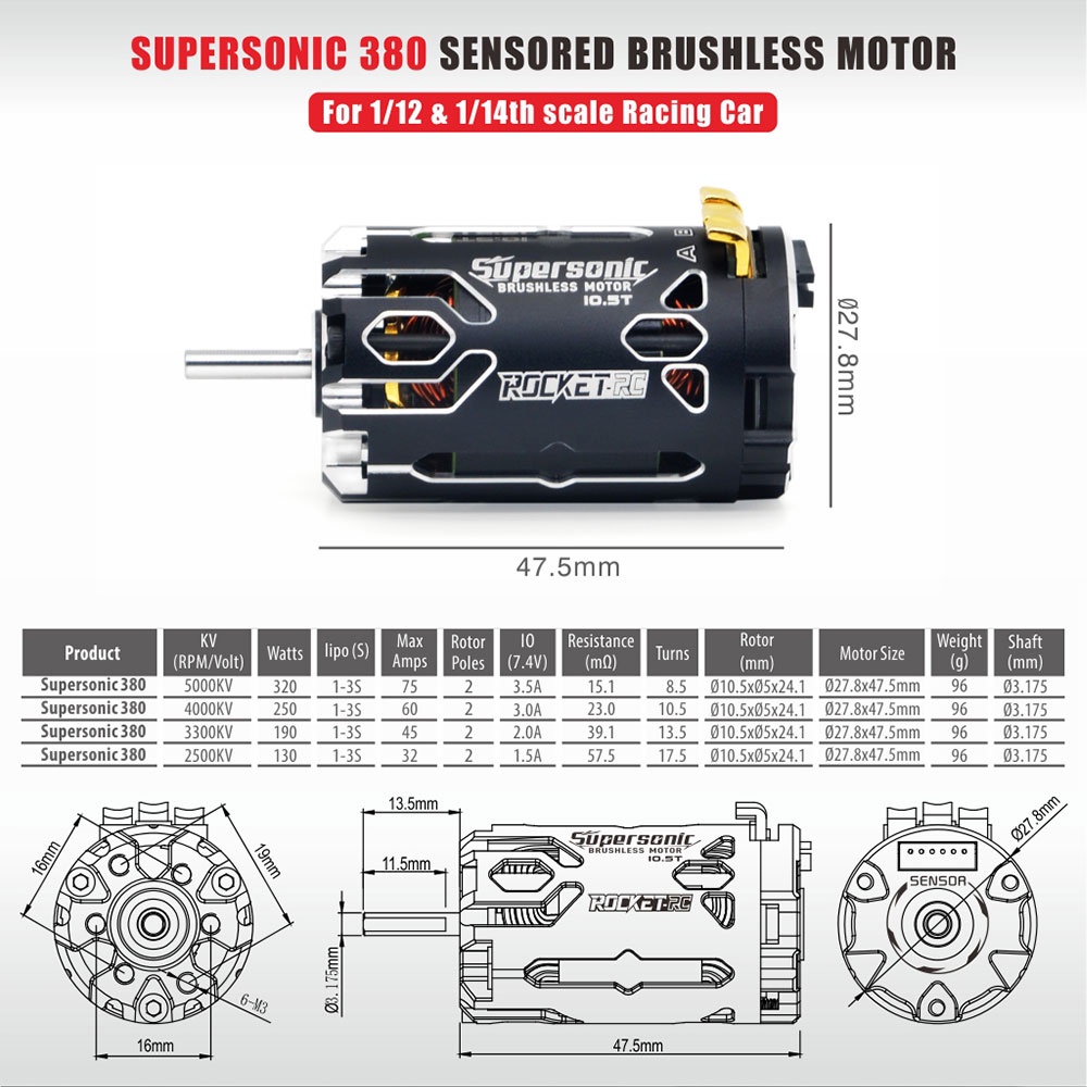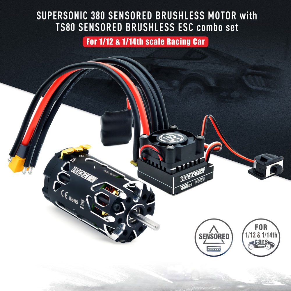 Surpass Hobby Rocket-RC Supersonic 380 8.5T 10.5T 13.5T 17.5T Brushless Sensored Motor with 80A ESC for 1/12 1/14 RC Car
