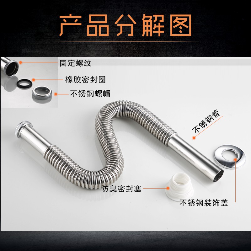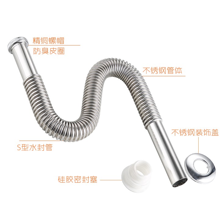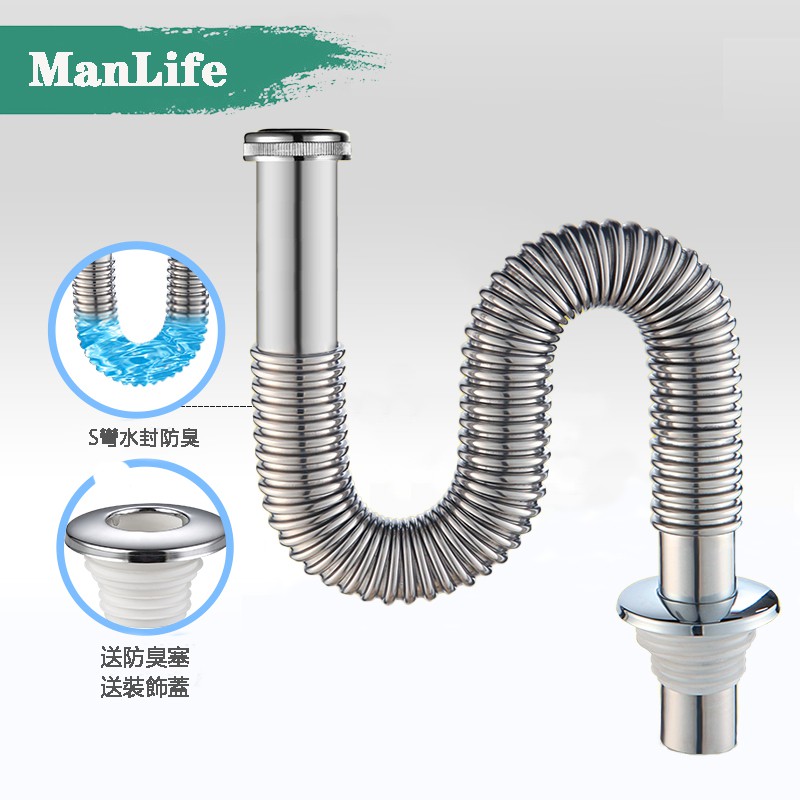SUS304 Washbasin Washbasin Stainless Steel Sewer Pipe S Elbow Washbasin Drain P Elbow Countertop Stainless Steel Water Pipe Deodorant Drain Pipe
