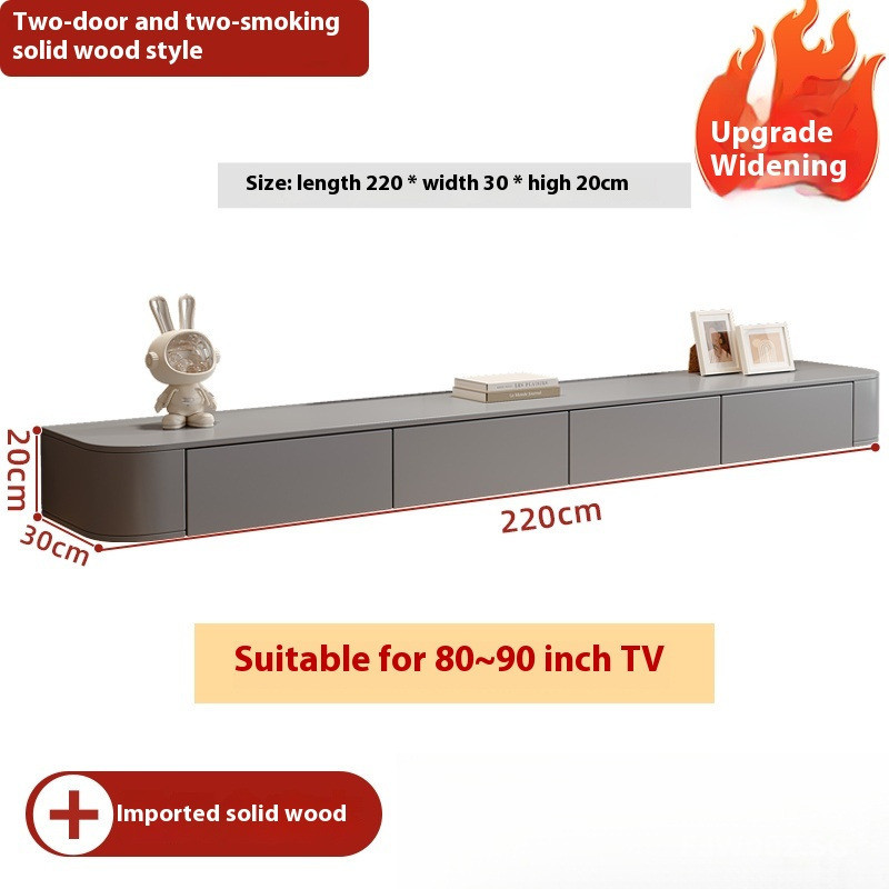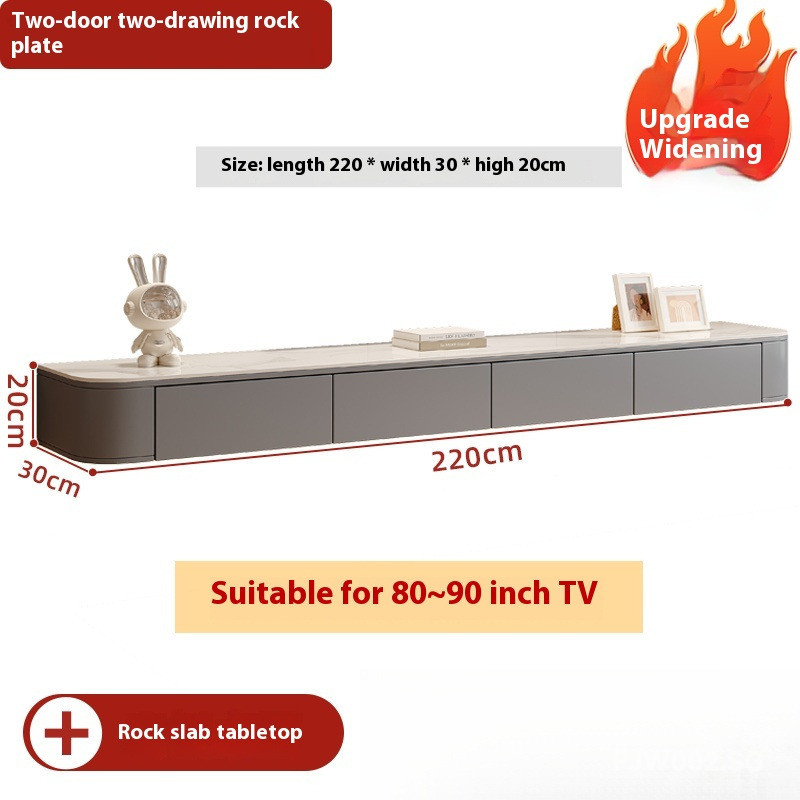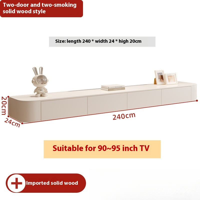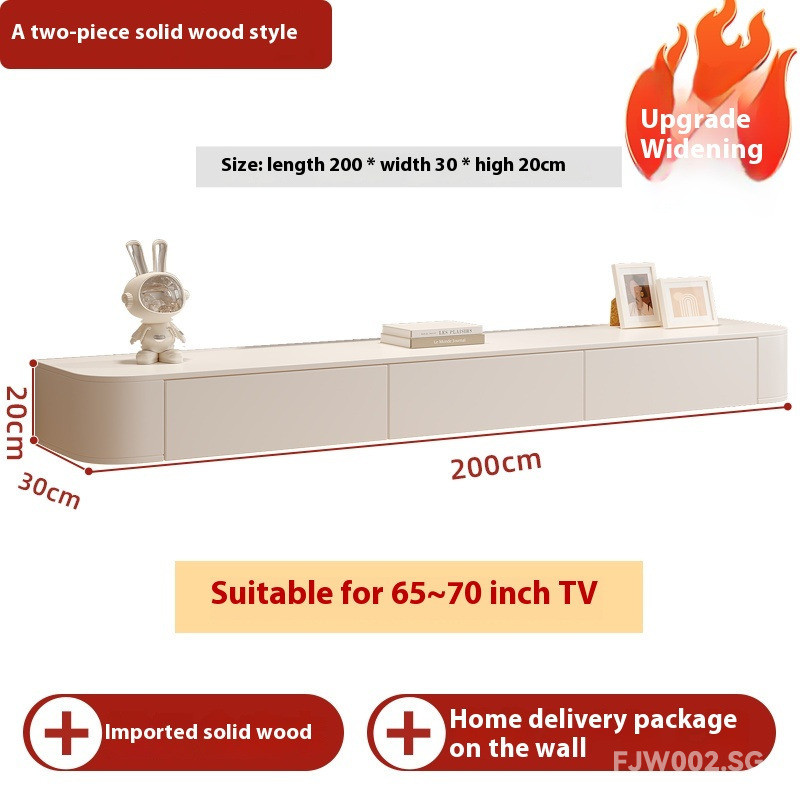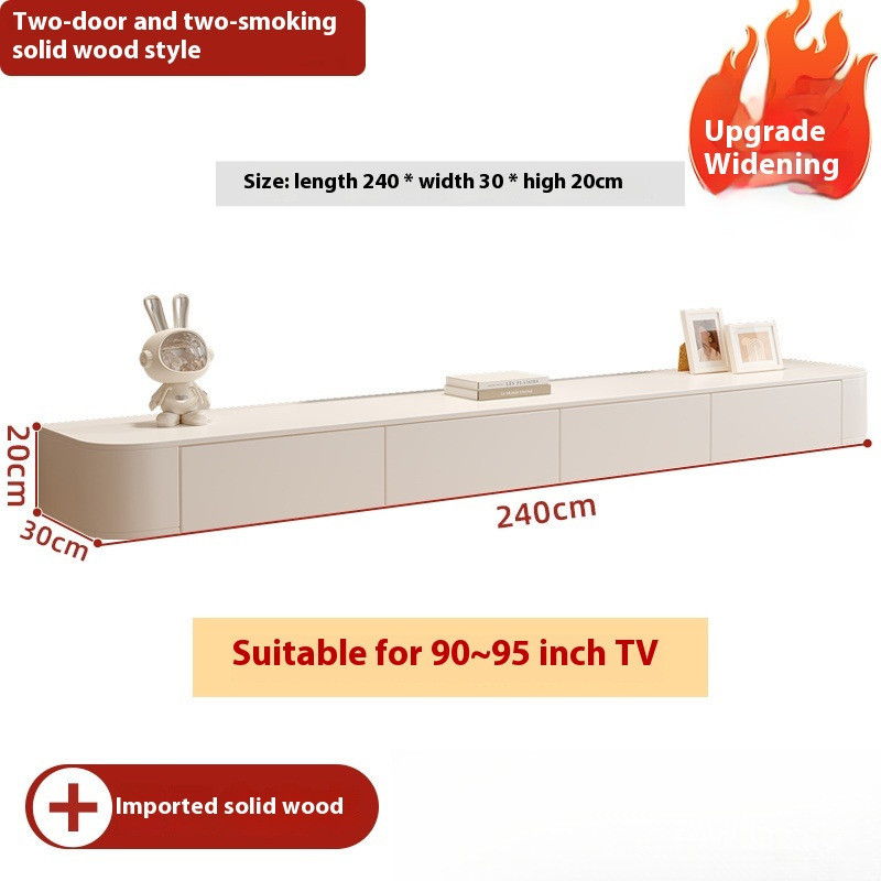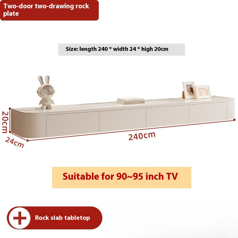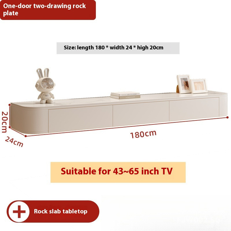 Suspended Cream-colored TV Cabinet Solid Wood Modern Floating TV Cabinet Living Room Rock Slab TV Cabinet