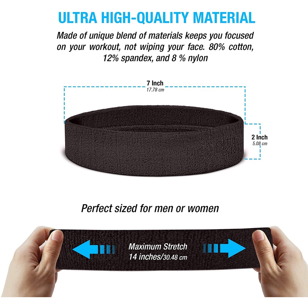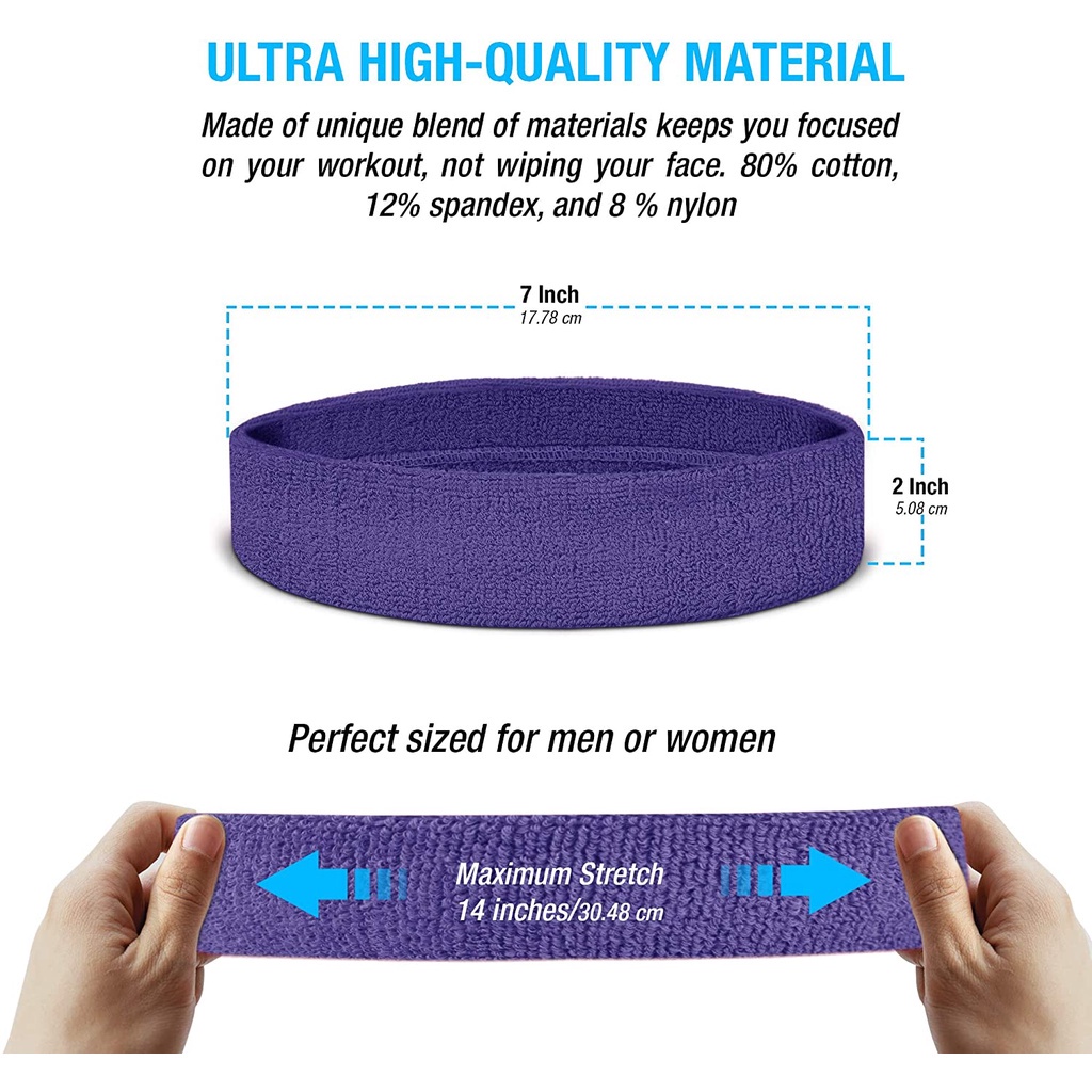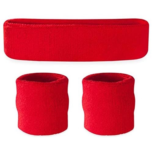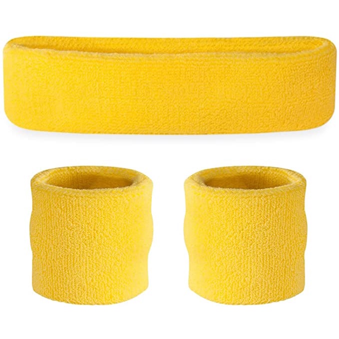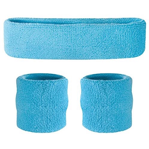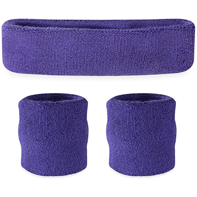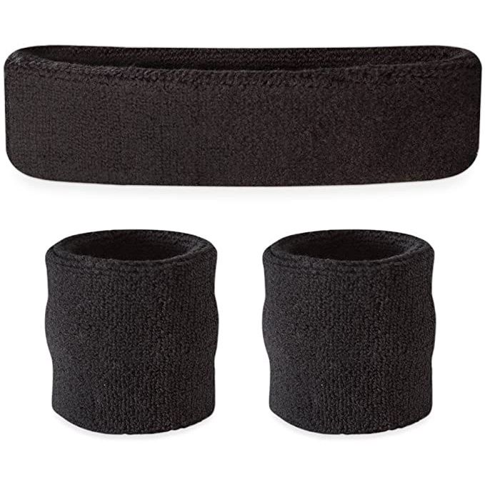 Sweatband Set Cotton Sports Headband Terry Cloth Wristband Moisture Wicking Sweat Absorbing Head Band Athletic Exercise Basketball Wrist Sweatbands and Headbands