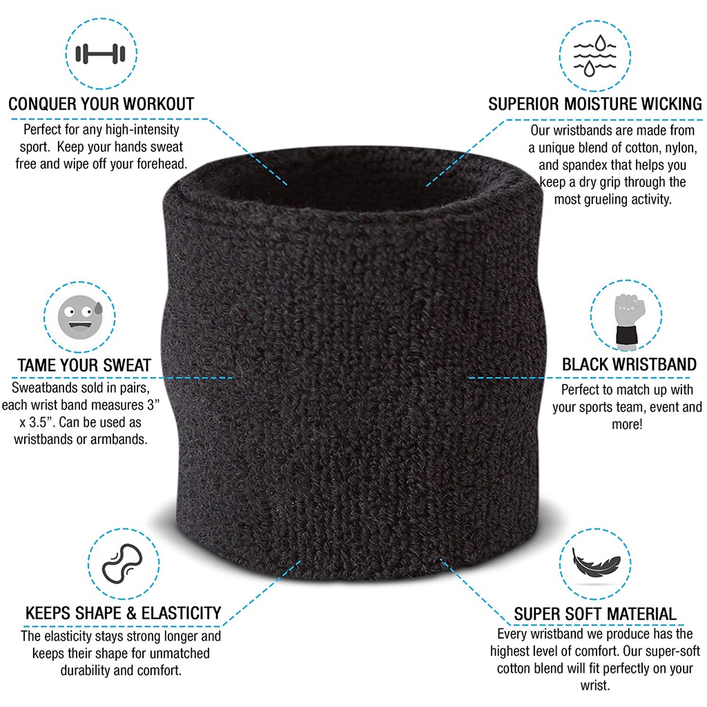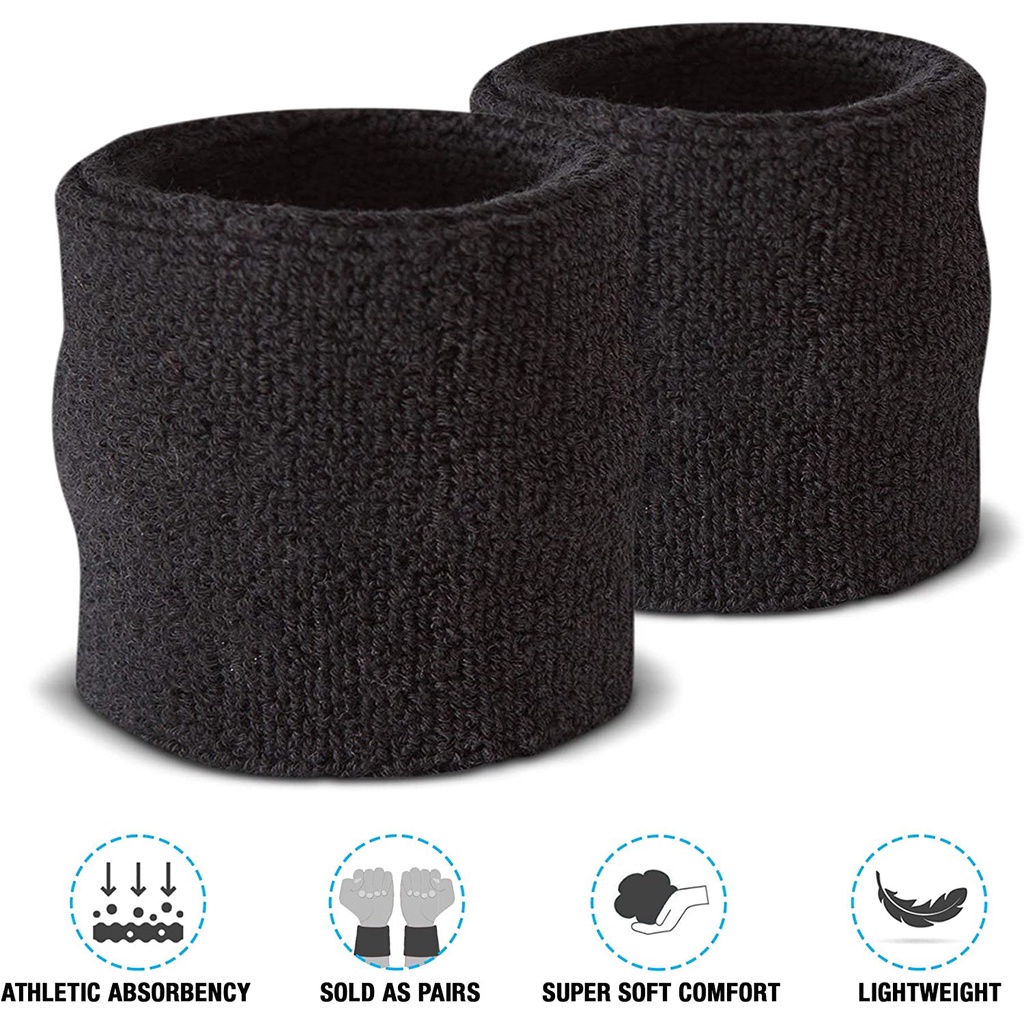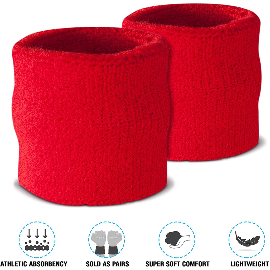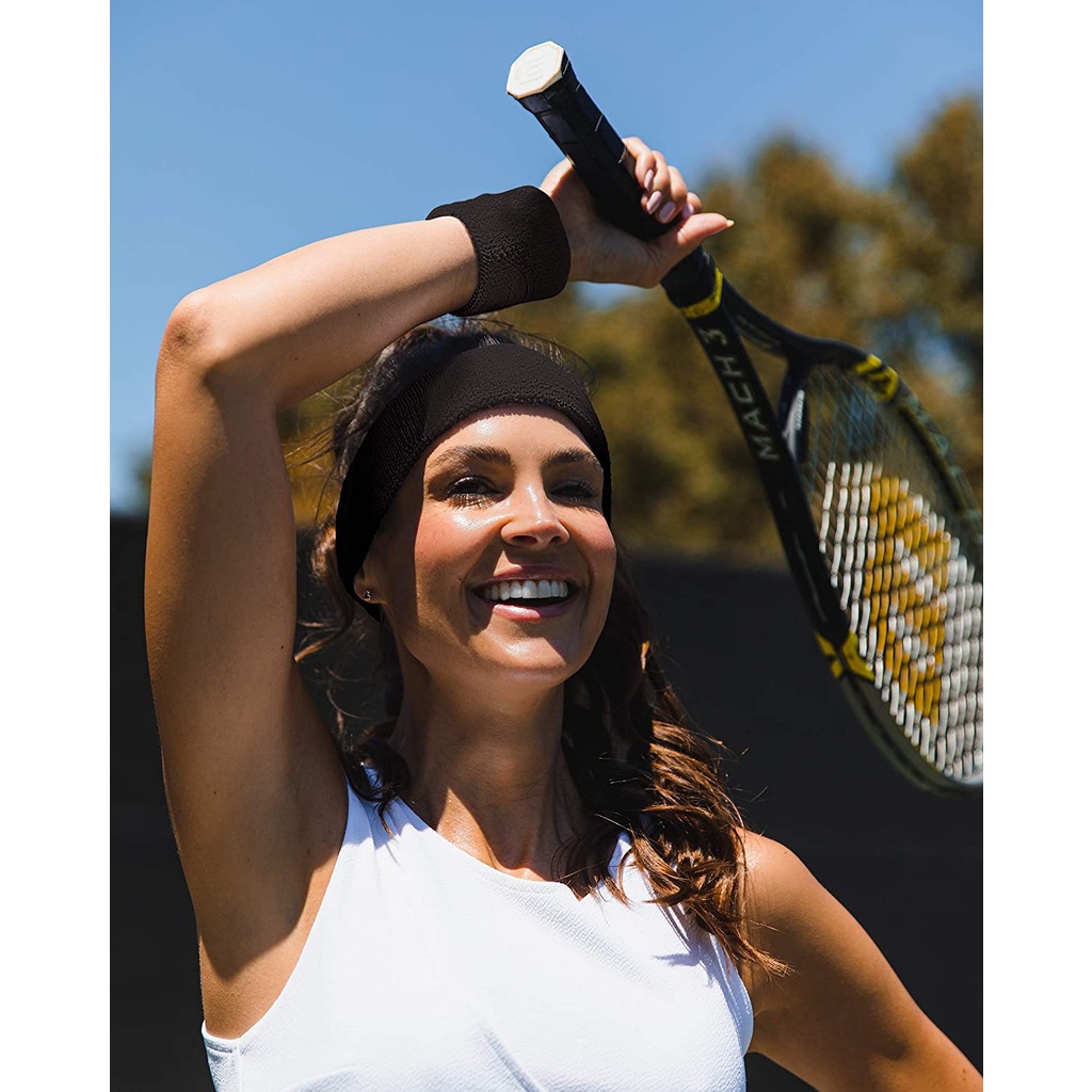 Sweatband Set Cotton Sports Headband Terry Cloth Wristband Moisture Wicking Sweat Absorbing Head Band Athletic Exercise Basketball Wrist Sweatbands and Headbands