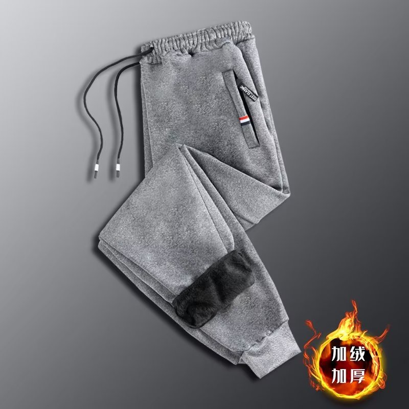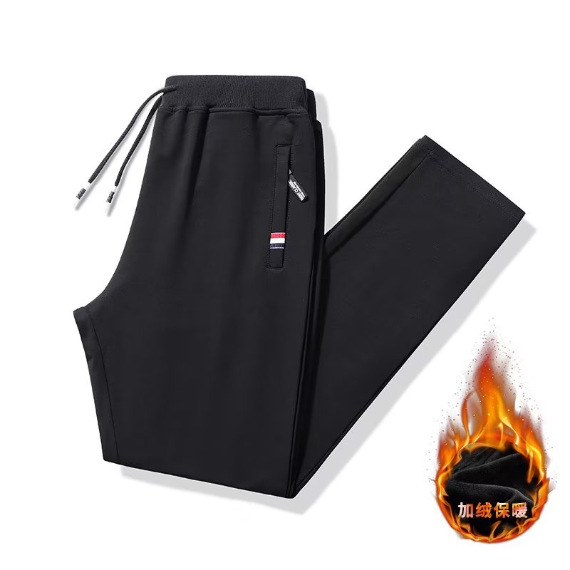 Sweatpants men's spring, autumn and winter loose straight-leg slacks men's black versatile plus-down thick long pants