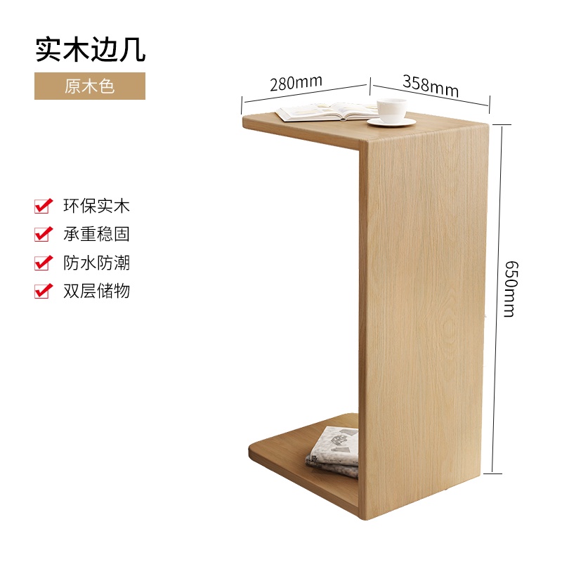 Syezyo Side Table Solid Wood U-shaped Bedside Table C- Shaped Tatami Storage Rack Small-sized Corner Creative Bedside Sofa Side Living Room Tea Table