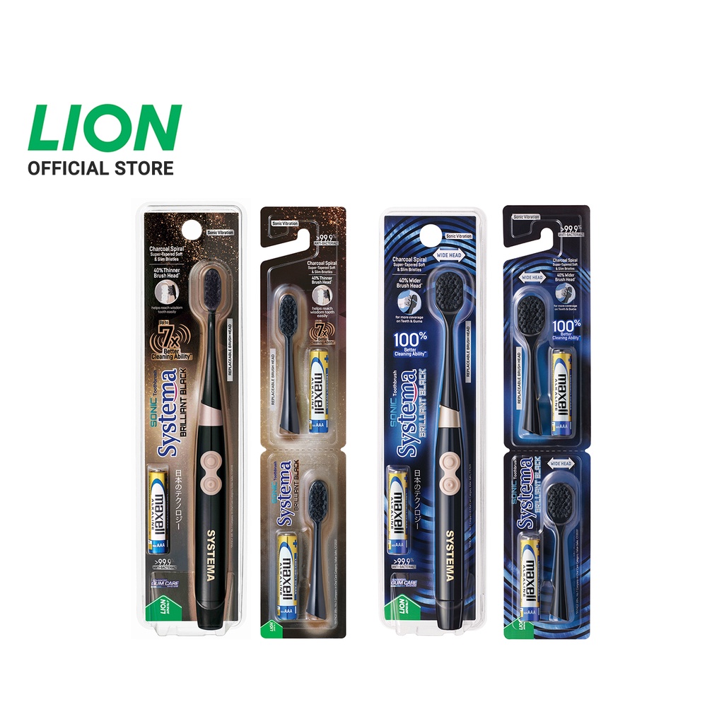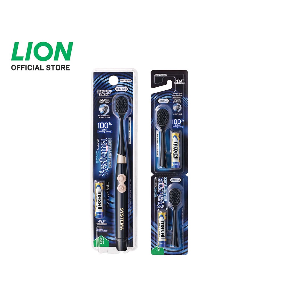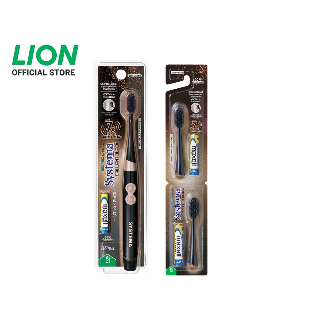 Systema Sonic Powered Toothbrush Brilliant Black Toothbrush + Refill 2s