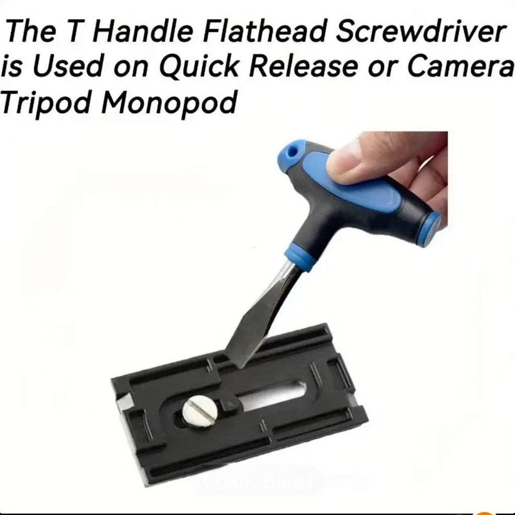 T Handle Flat Head Screwdriver with Ergonomic Plastic Handle, Wide Flathead Screwdriver for Slotted Screws, Used on Quick Release Plate or Camera Tripod Monopod