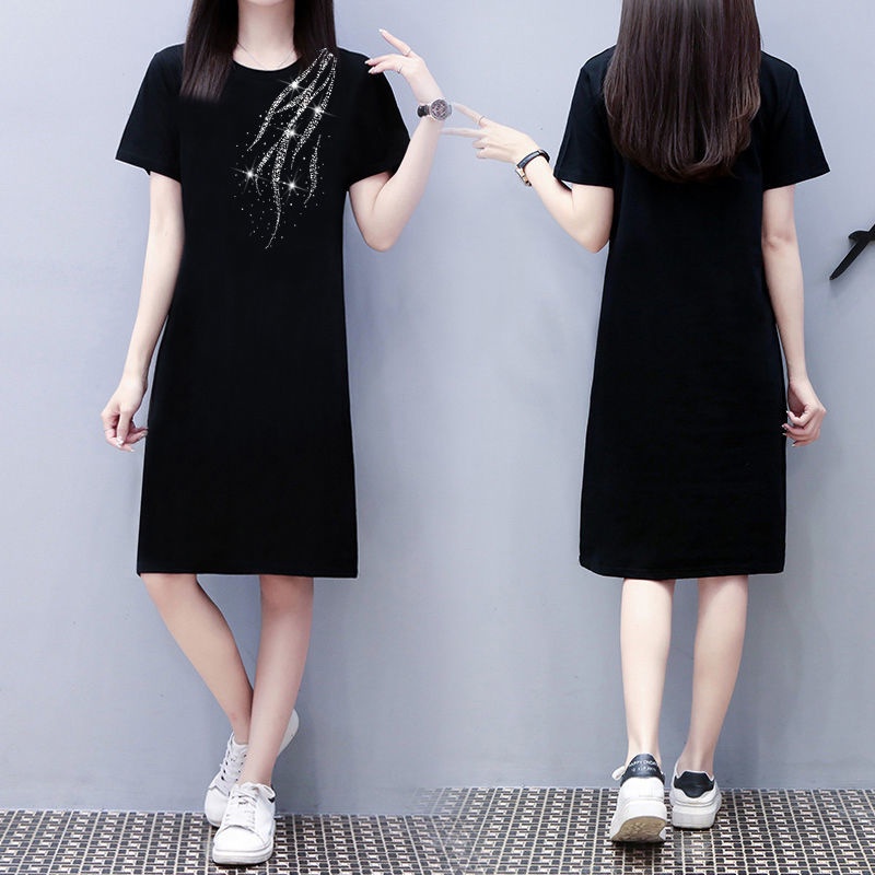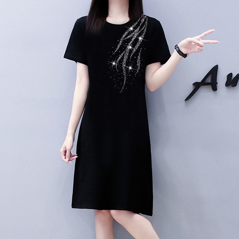 T-shirt Dress Loose Korean Short Sleeve Diamond Large Size Dress Female