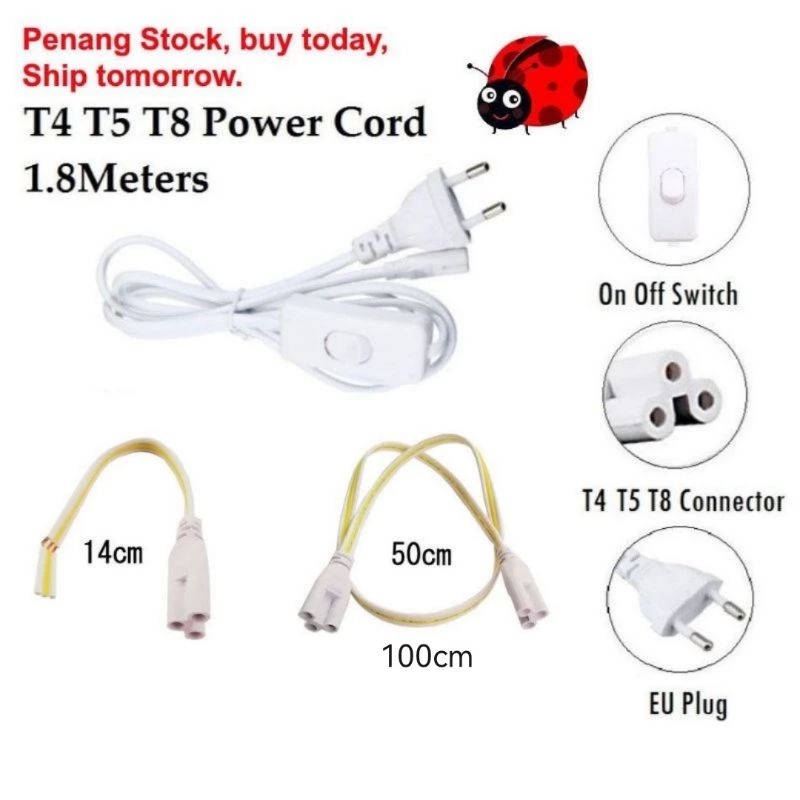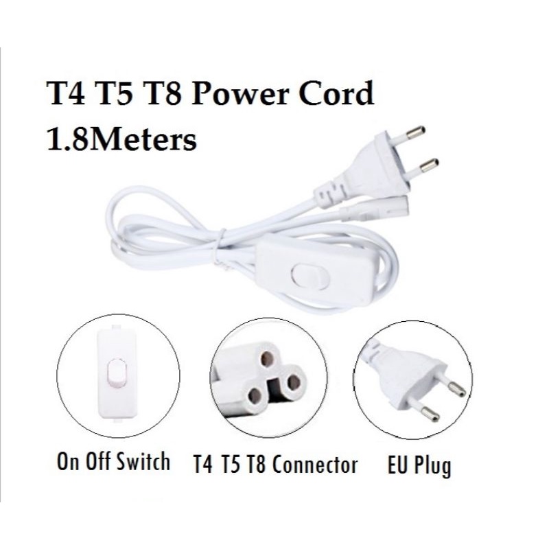 T4 T5 T8 LED Tube Light EU Plug 1.8m Wire Switch 3 Pin Connector Power Cable