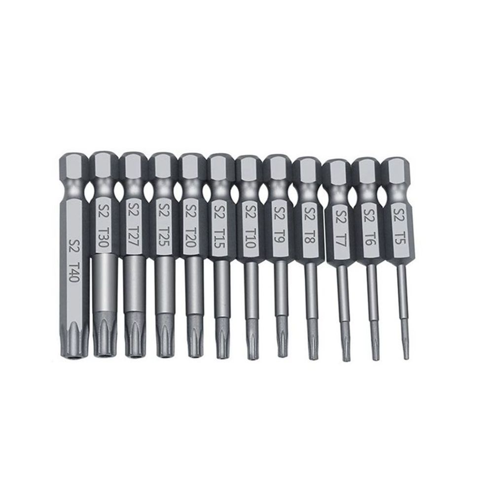 T5 T6 T7 T8 T9 T10 T15 T20 T25 T27 T30 T40 Torx Screwdriver Bit Set Hex Security Magnetic Head 1/4" Hex Shank Drill Bits