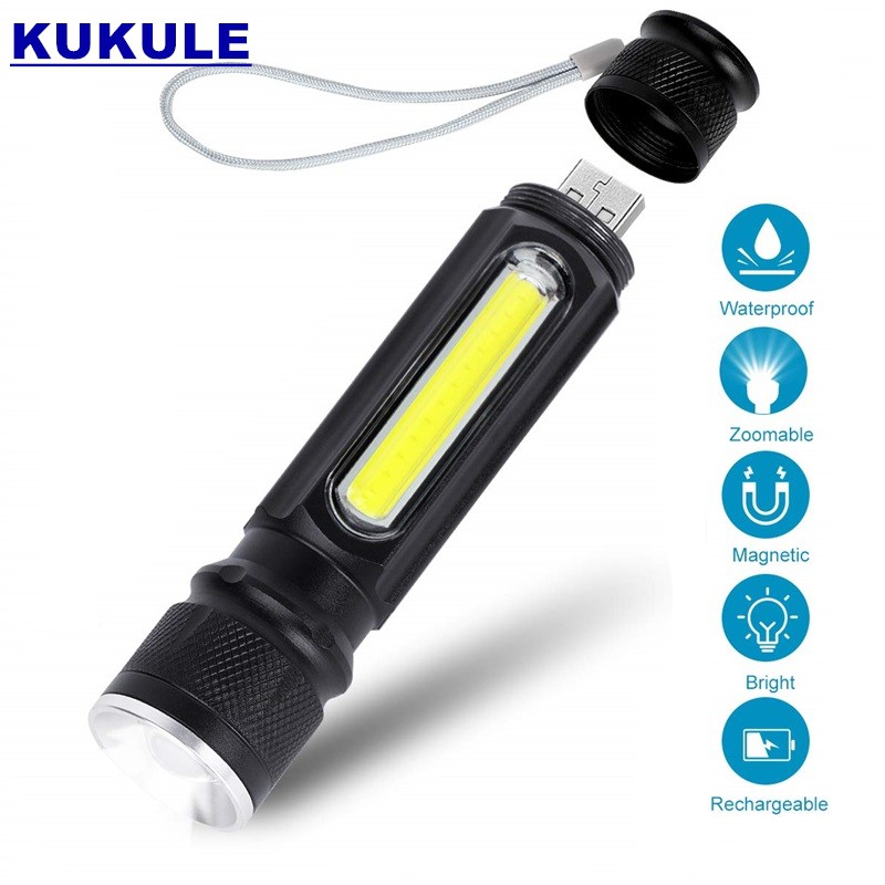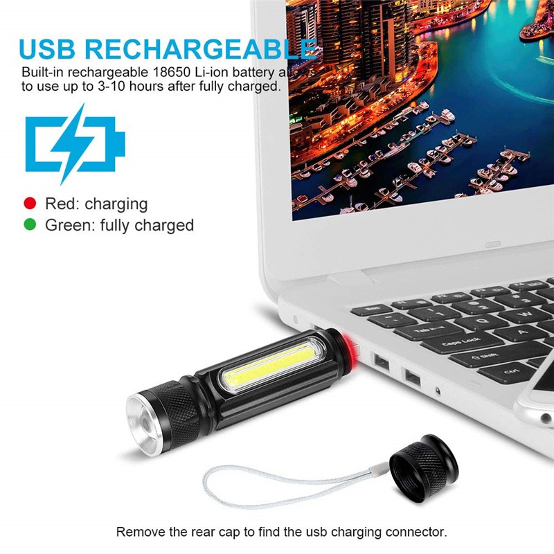T6 Magnetic Camping Lamp USB LED Flashlight Torch Rechargeable Lantern With side light Tactical Mini Flashlight