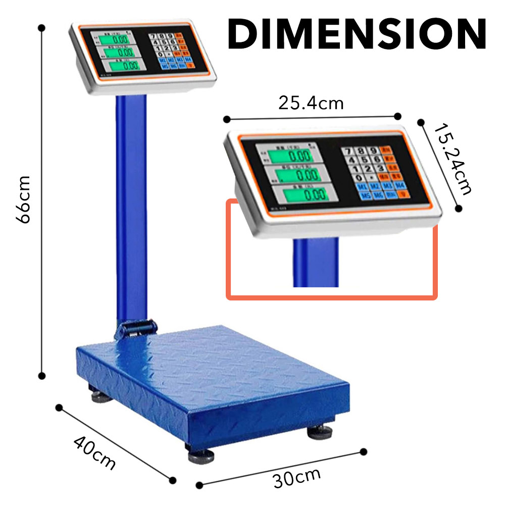 T607 300KG Commercial Scale Digital Double Display Weight Platform Scale Platform Build In Rechargeable Battery