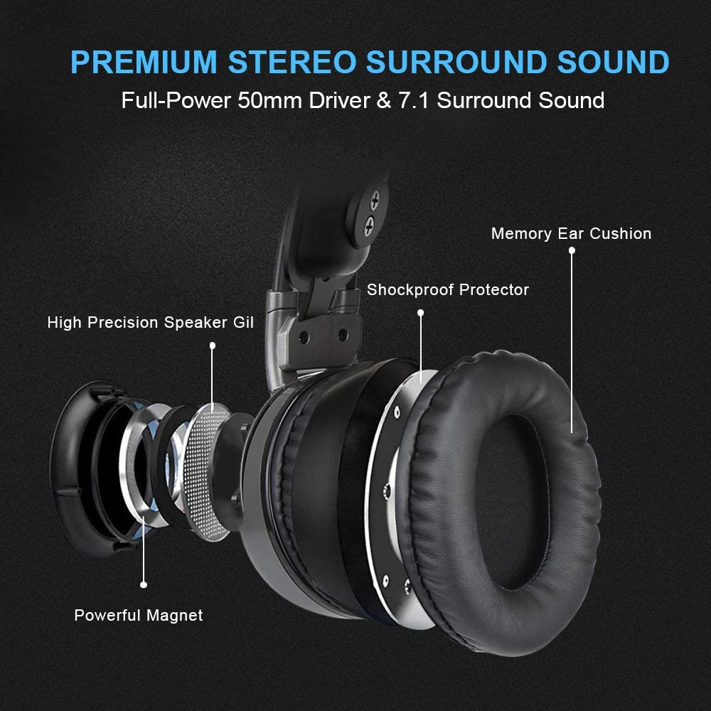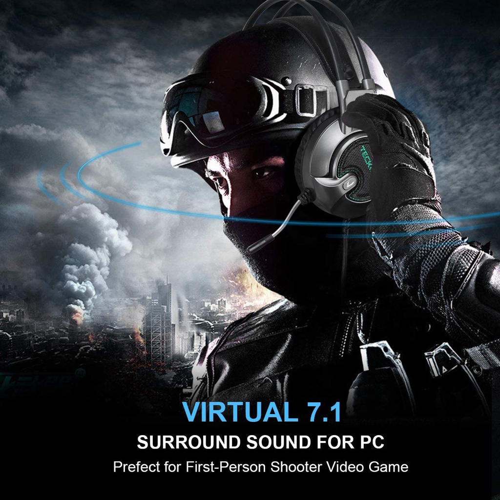 TECKNET USB PC Gaming Headset, 7.1 USB Surround Sound Headphones Headband, Noise Cancelling Microphone and Volume Contro