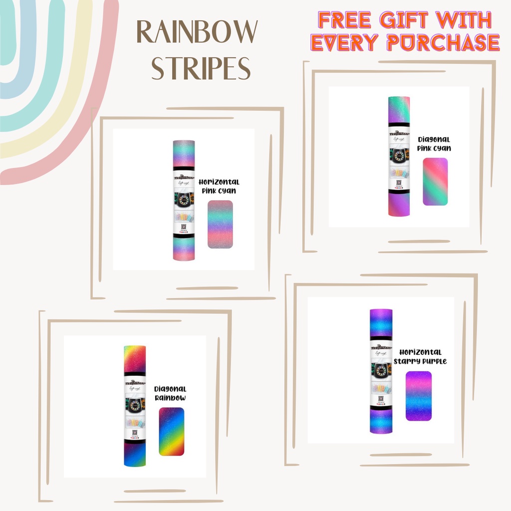 TECKWRAP Rainbow Stripes Adhesive Vinyl for Crafts/Cricut/Silhouette | Permanent vinyl | Craft Vinyl | Self-adhesive