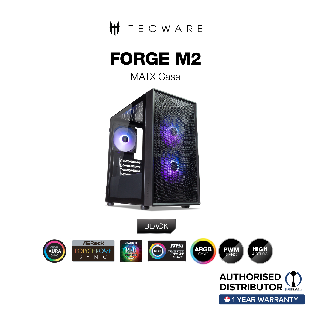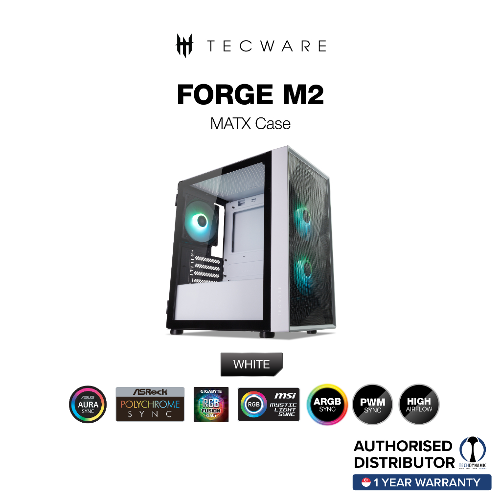 TECWARE Forge M2 TG ARGB MATX Case, 3 x 12cm ARGB Fans, Black & White