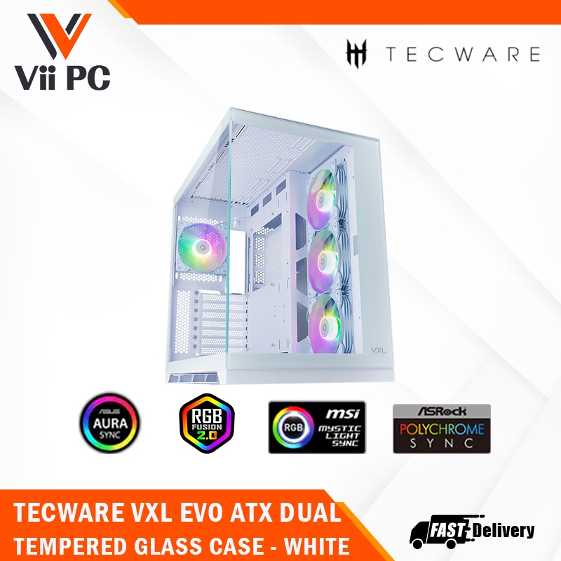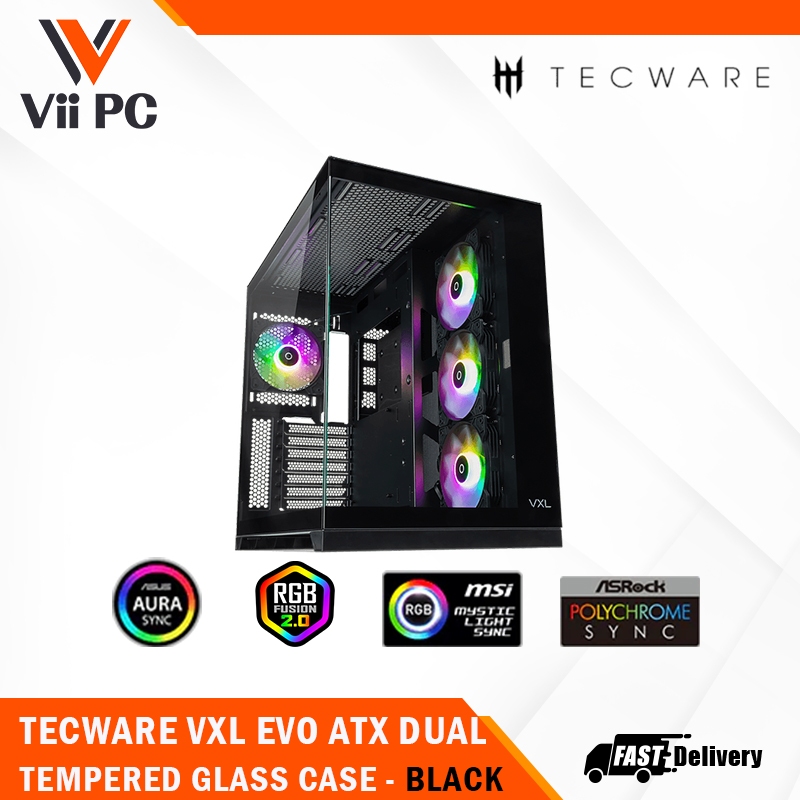 TECWARE VXL EXO ATX DUAL TEMPERED GLASS CASE - ARGB, Dual Chamber Layout, Panel Locking Mechanism, Includes 4x RGB Fans