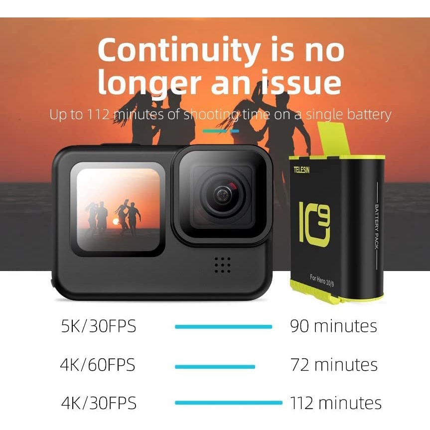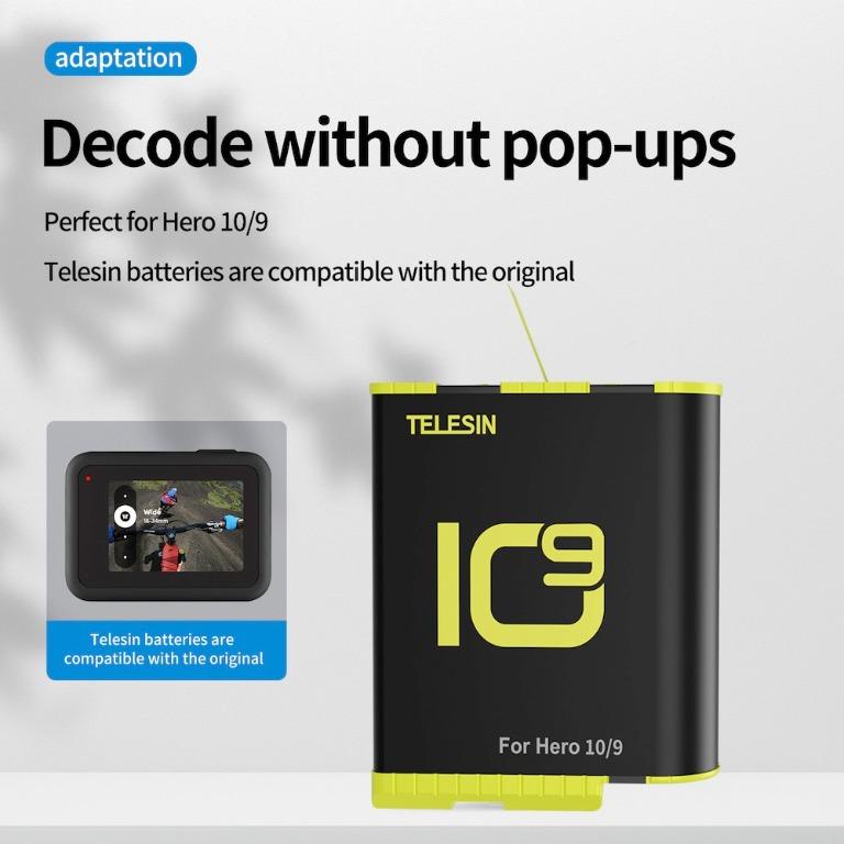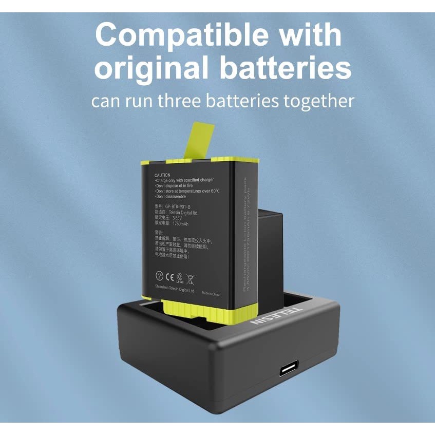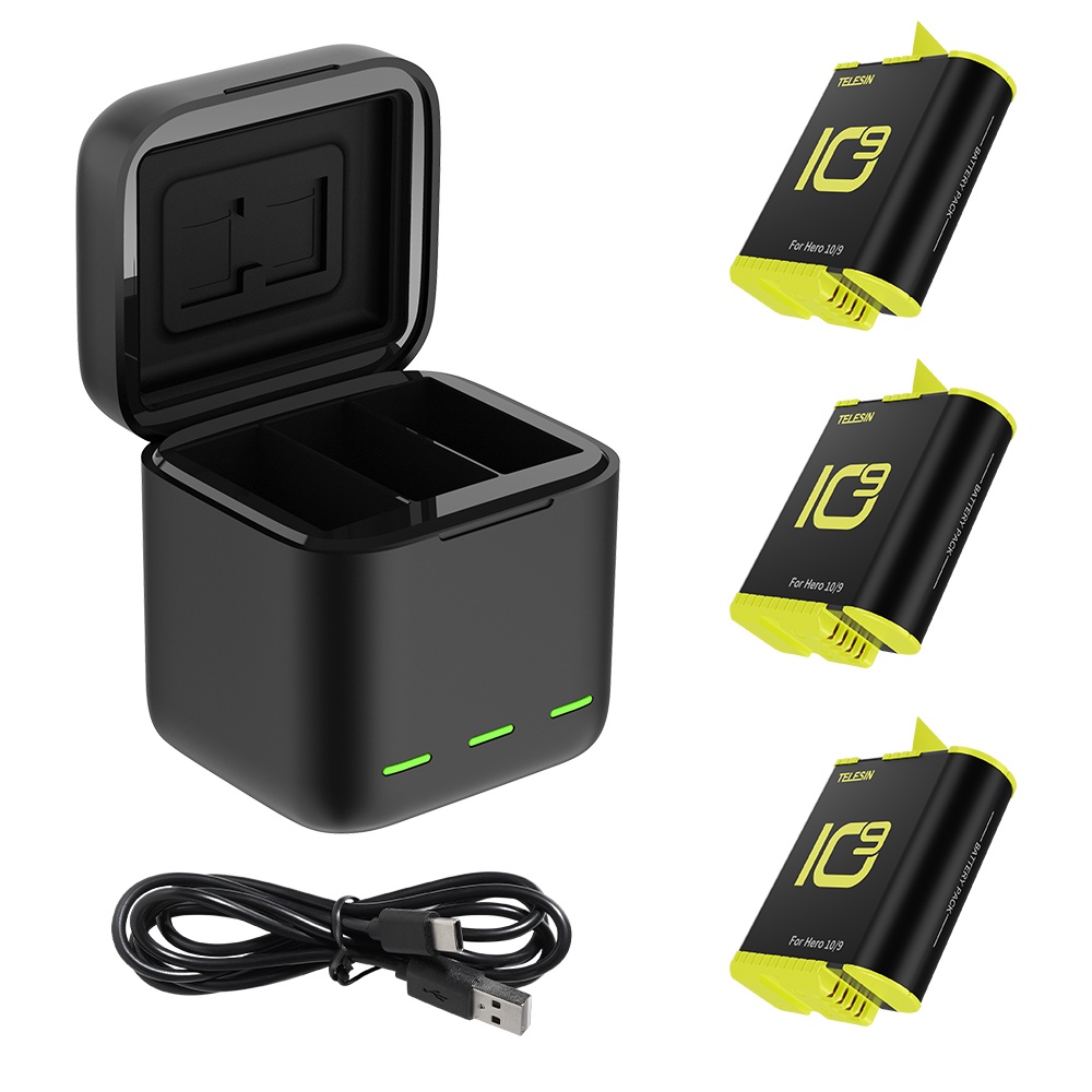 TELESIN Battery Charger Storage Box Charging Kit for GoPro HERO 11 10 9 BLACK