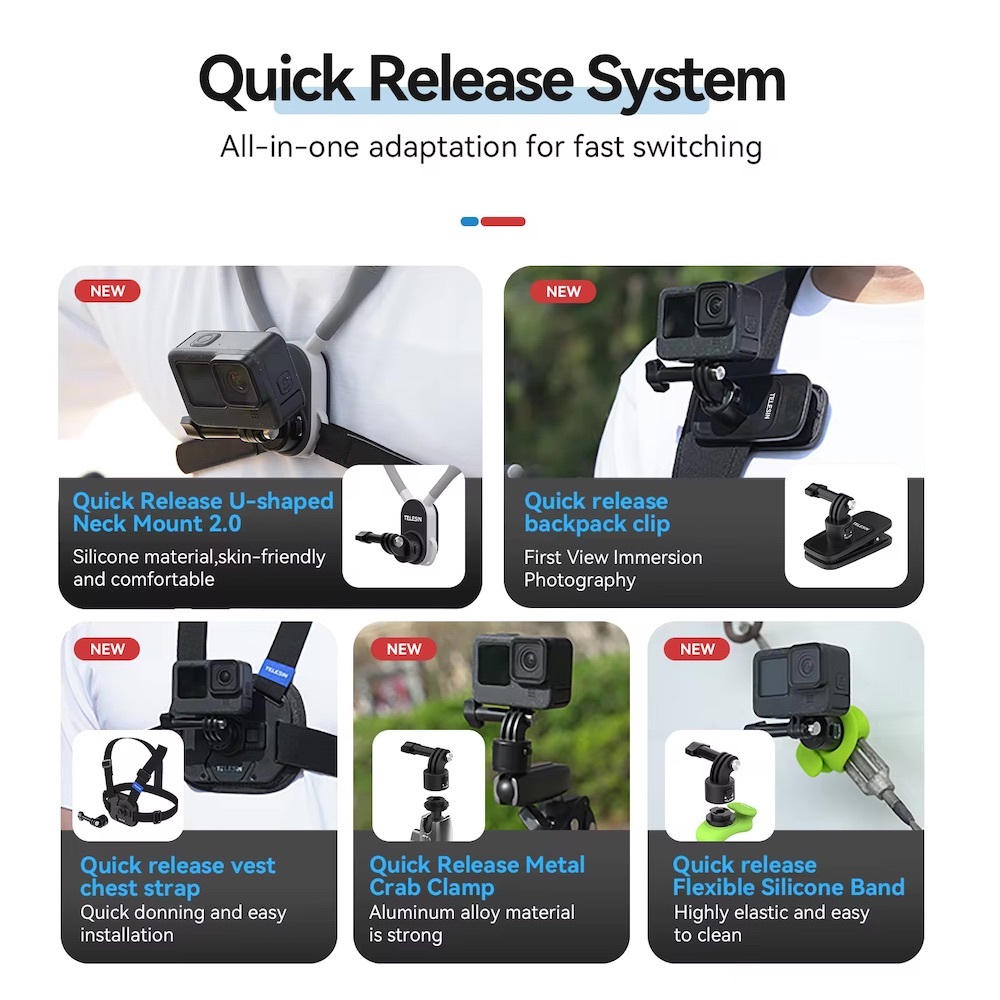 TELESIN Quick Release Neck Holder Strap Mount 2.0 for GoPro Insta360 DJI Action Camera