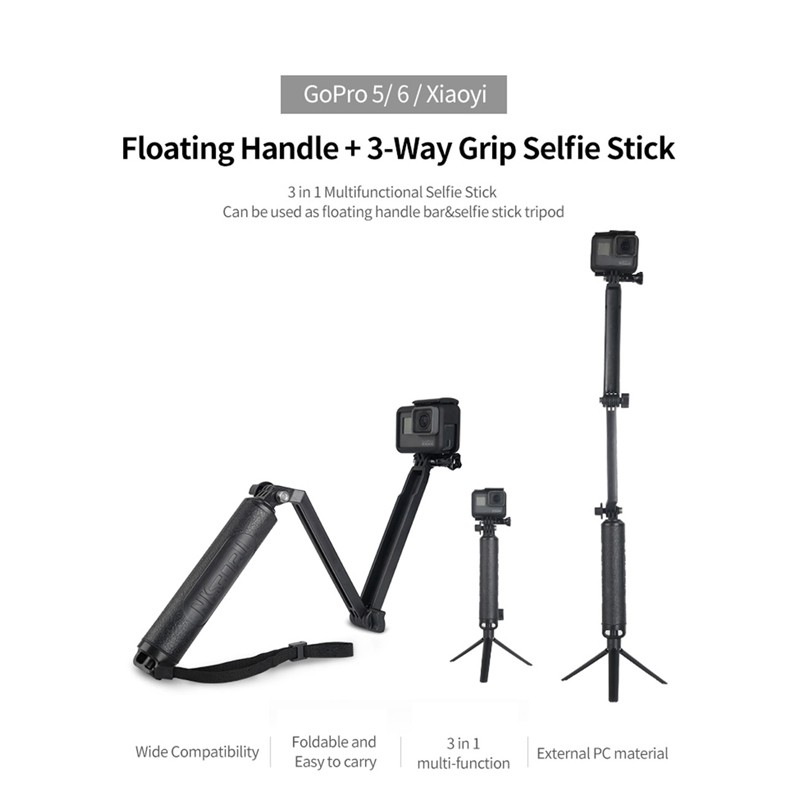 TELESIN Waterproof 3 Way Selfie Floating Hand Grip Selfie Stick Monopod Pole