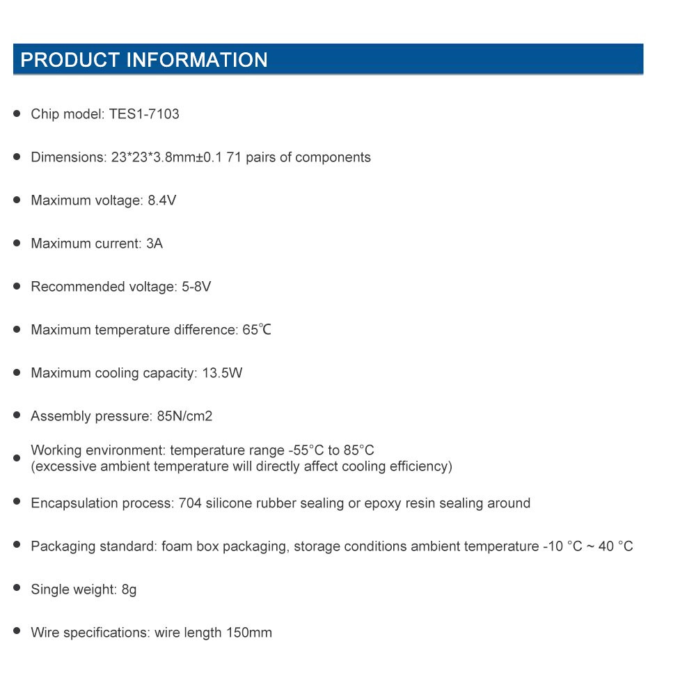 TES1-7103 3A 8V 23x23mm Thermoelectric Cooler Peltier Plate Module