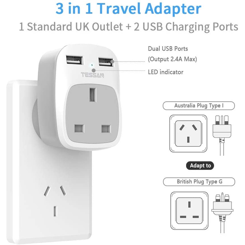 TESSAN China Plug Adapter with USB-A+USB-C,ustralia Travel Adapter China Adaptor New Zealand Fiji Type I