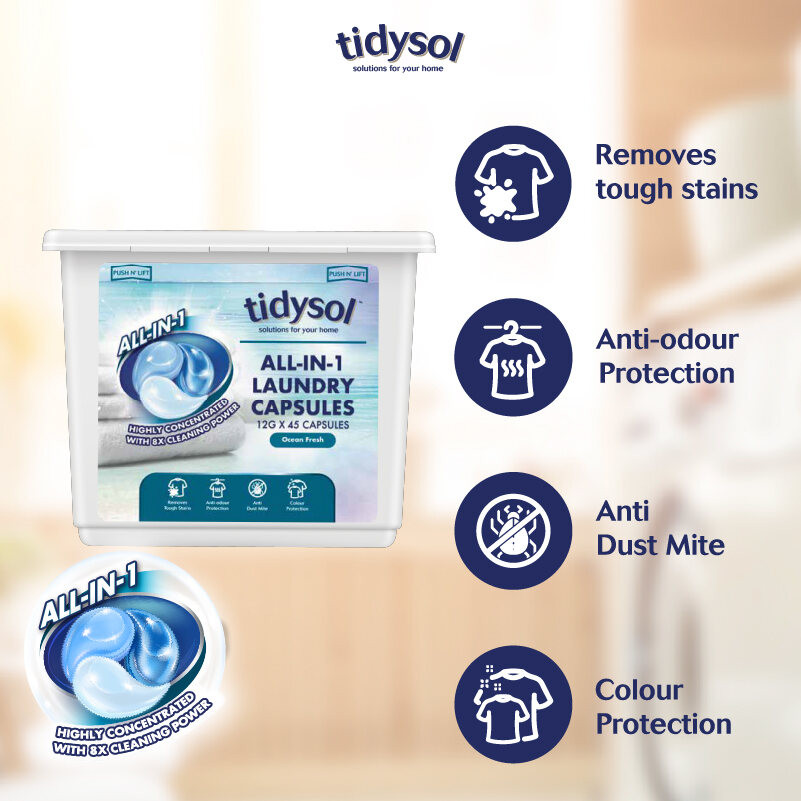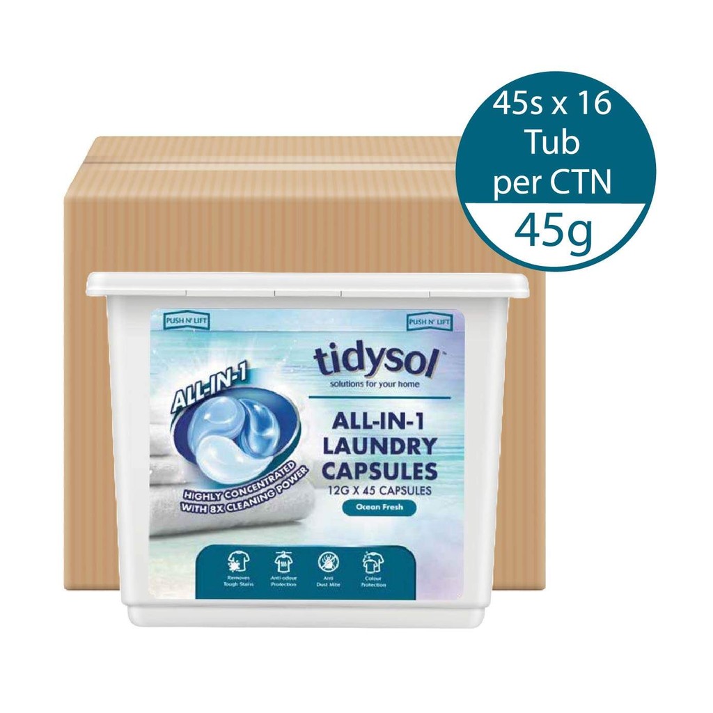 TIDYSOL All-In-1 Laundry Capsule Ocean Fresh 12g x 45s x 16 Tubs (Per Carton)