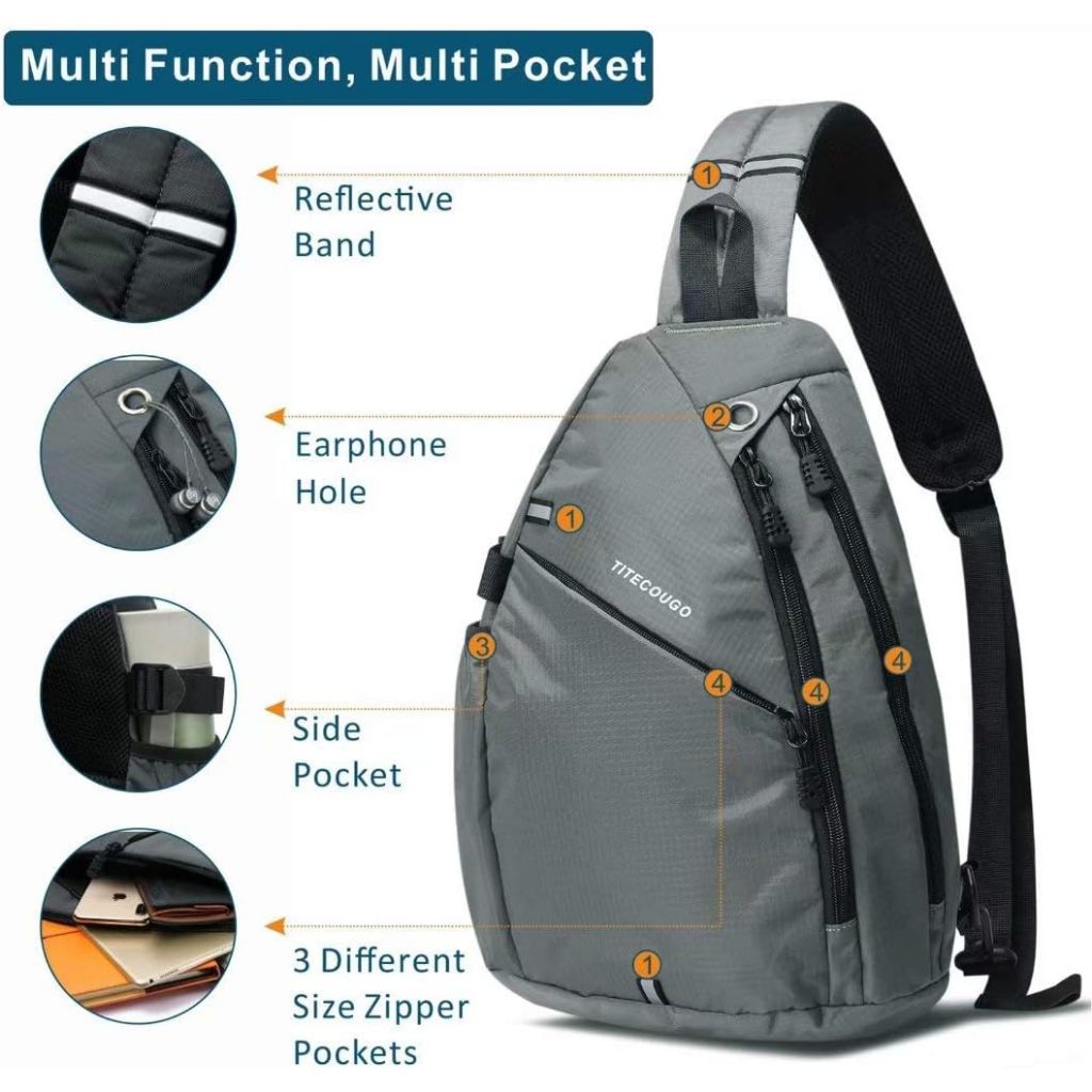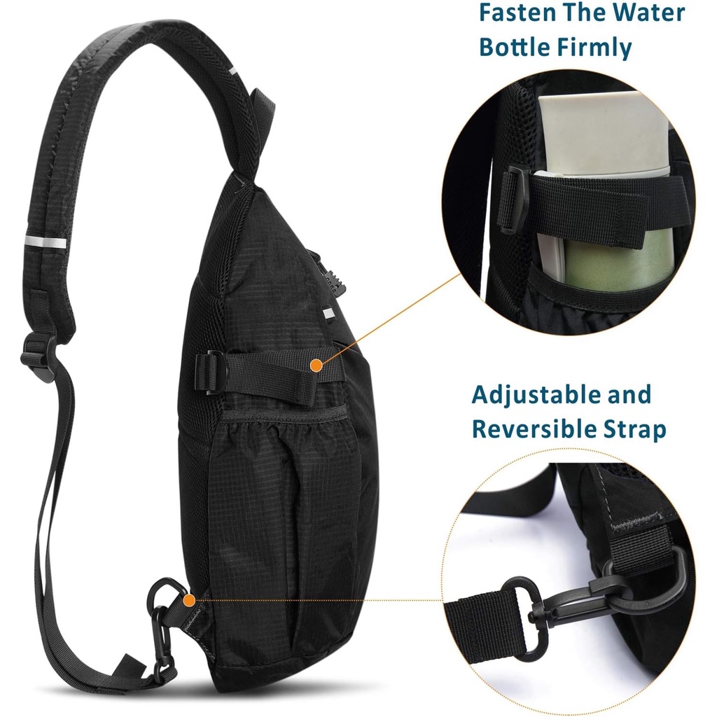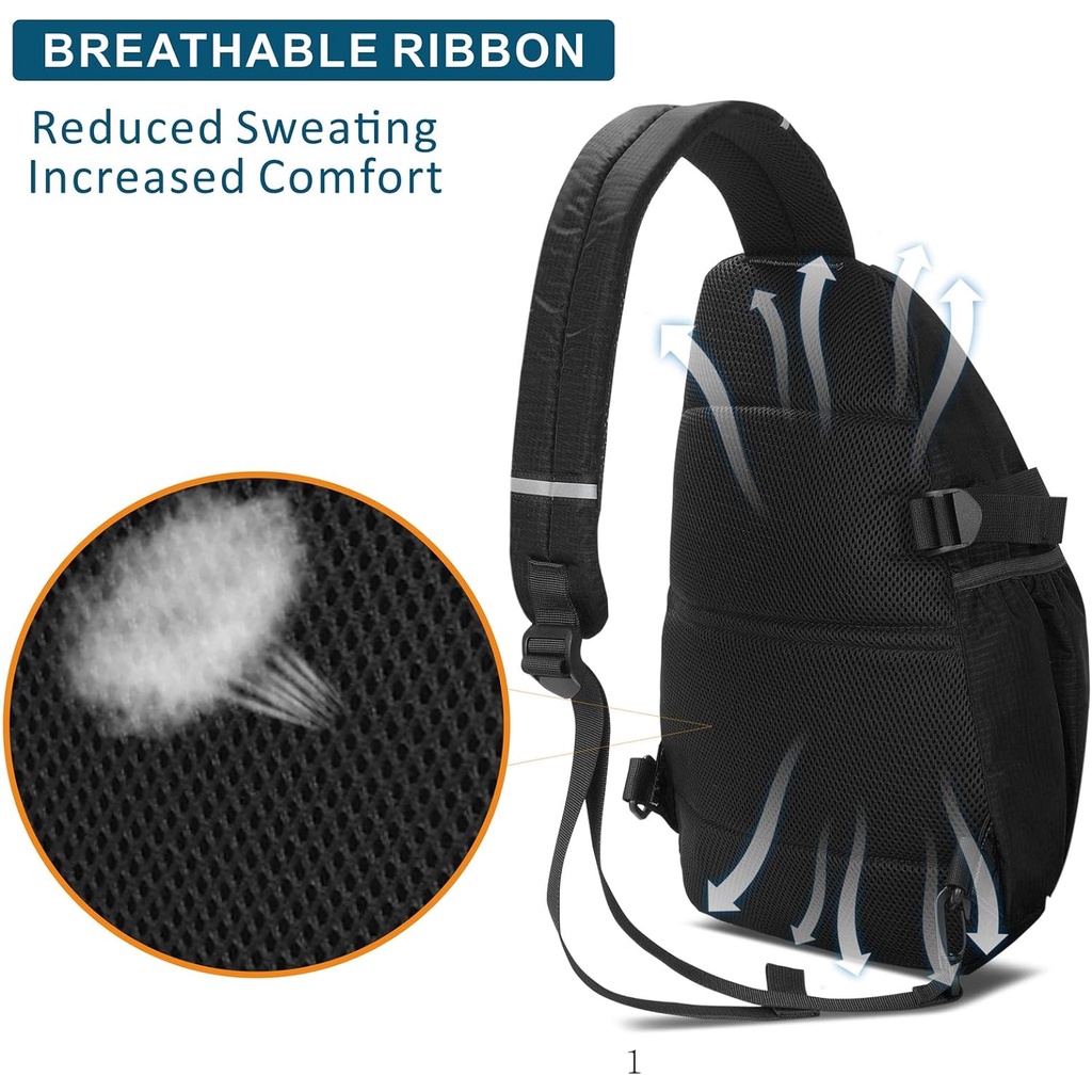 TITECOUGO Sling Backpack Travel Shoulder Bag One Strap Crossbody Bags Lightweight Chest Daypack Camp Day Packs for Women and Men Hiking Accessories Large Black