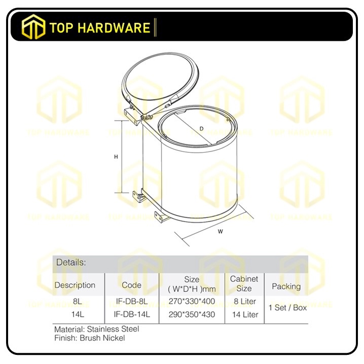 TOP Kitchen Cabinet Build in Duster Bin Install Dust Bin Rubbish Bin Dustbin Tong Sampah (8/14)Liter