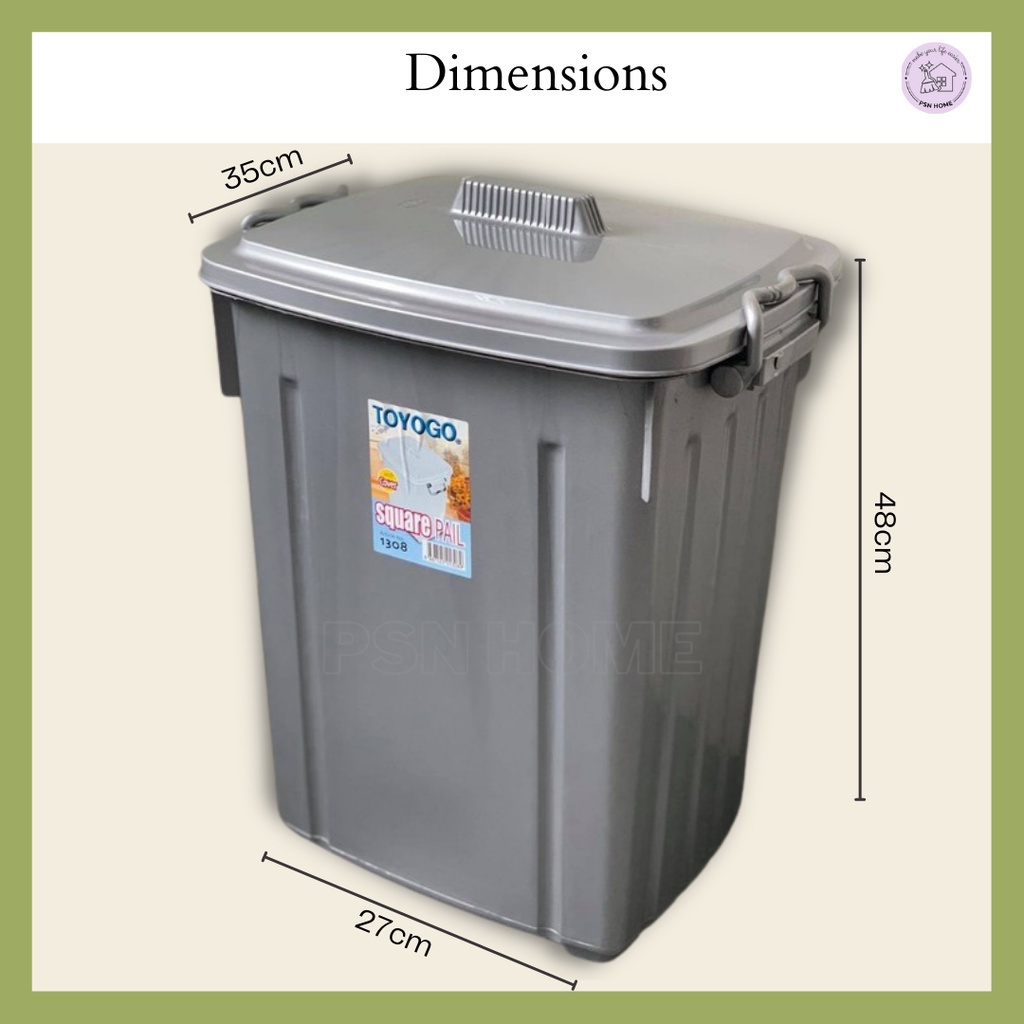 TOYOGO Rectangle Pail Bin Square Multipurpose with Lid Baldi Bekas Plastik Serbaguna 30 Liter