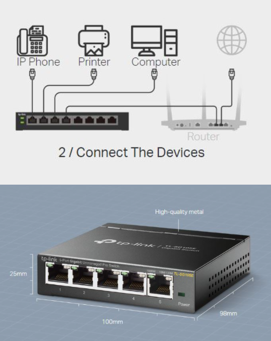 TP-LINK 5-Port Gigabit 100/1000mbps Unmanaged Pro Switch (TL-SG105E)