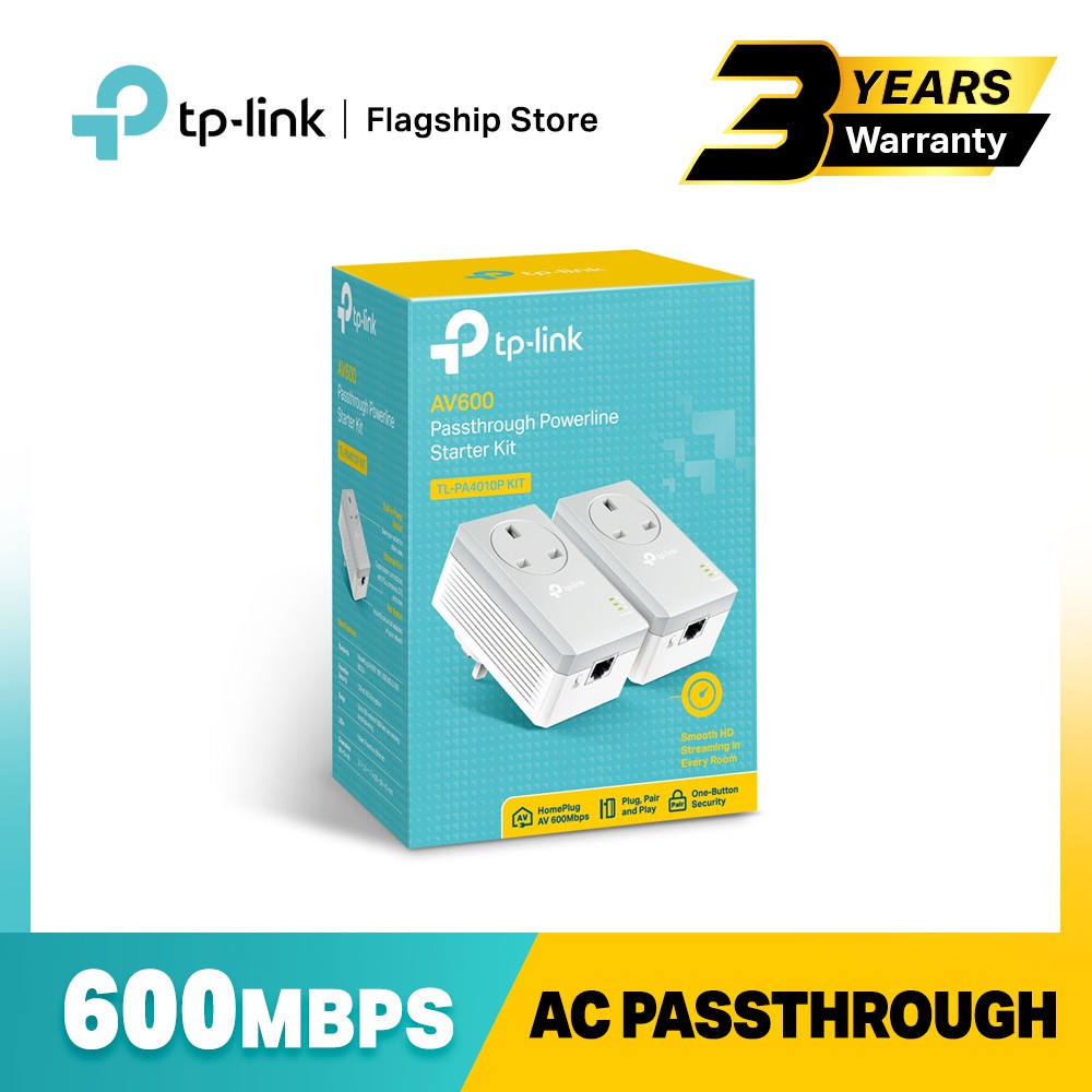 TP-LINK TL-PA4010P KIT AV600 HomePlug Passthrough Powerline Kit (Plug, Pair & Play)