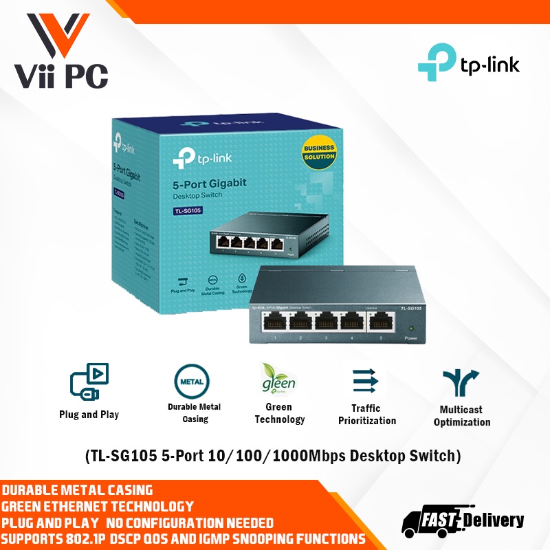 TP-LINK TL-SG105 5 Port Gigabit Network Switch (Plug & Play, Steel Case)
