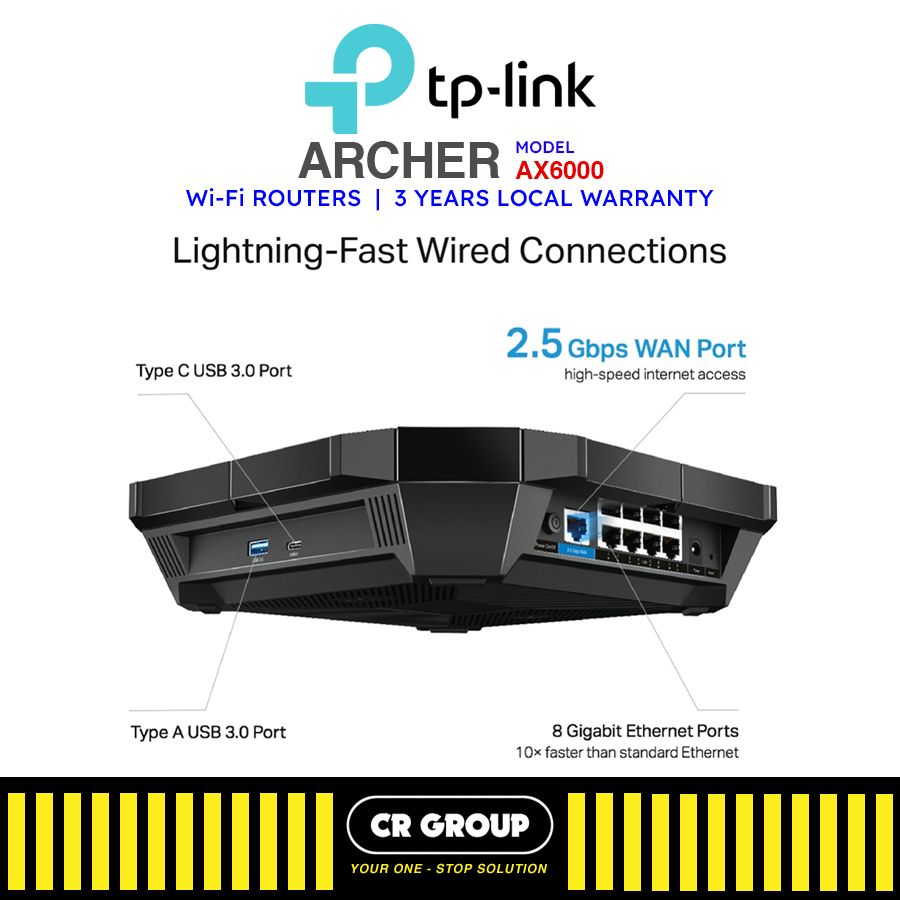 TP-Link Archer AX6000 Next-Gen Wi-Fi 6 Router, 8 Gigabit LAN Ports, MU-MIMO, 1.8GHz Quad-Core CPU (3Yrs Warranty)