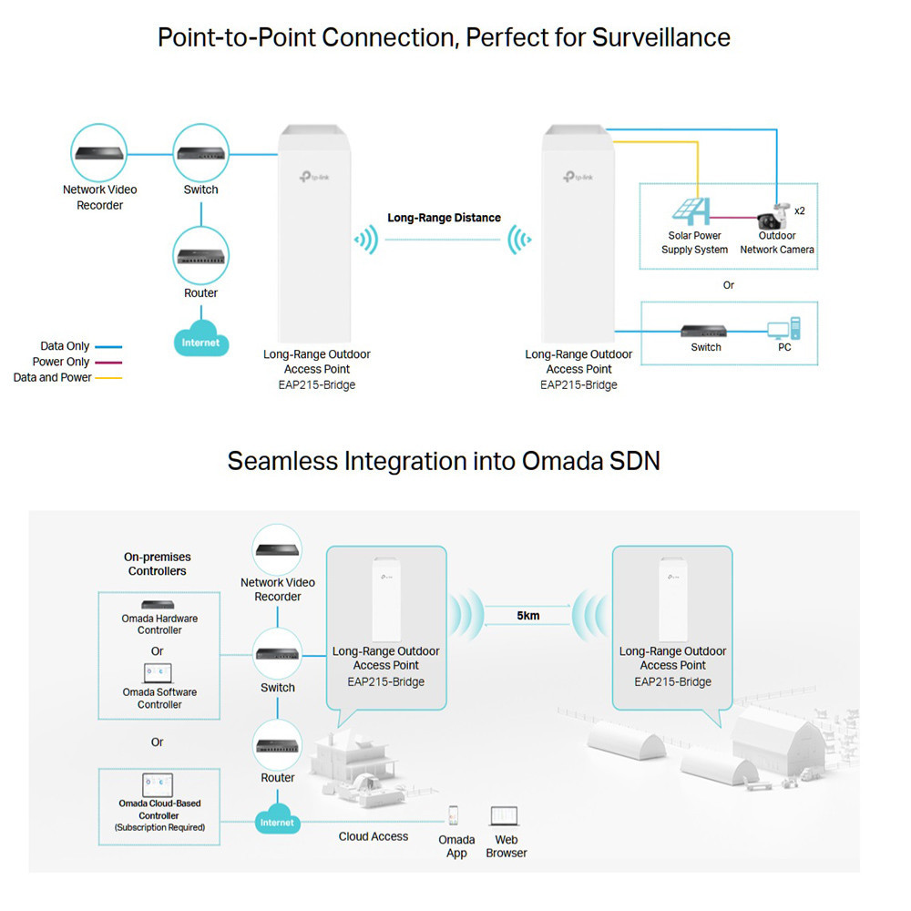 TP-Link Omada EAP215-Bridge KIT Wireless Bridge 5 GH 867 Mbps Long-Range Indoor Outdoor Access Point