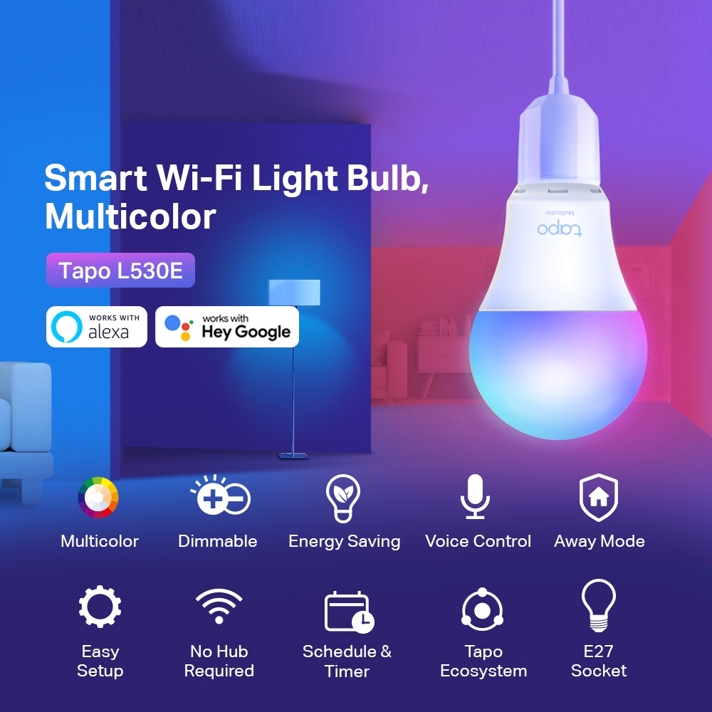 TP-Link Smart Wi-Fi LED Light Bulb 16 mil Colors Tapo L530E (E27/No Hub required/Google Assistant)