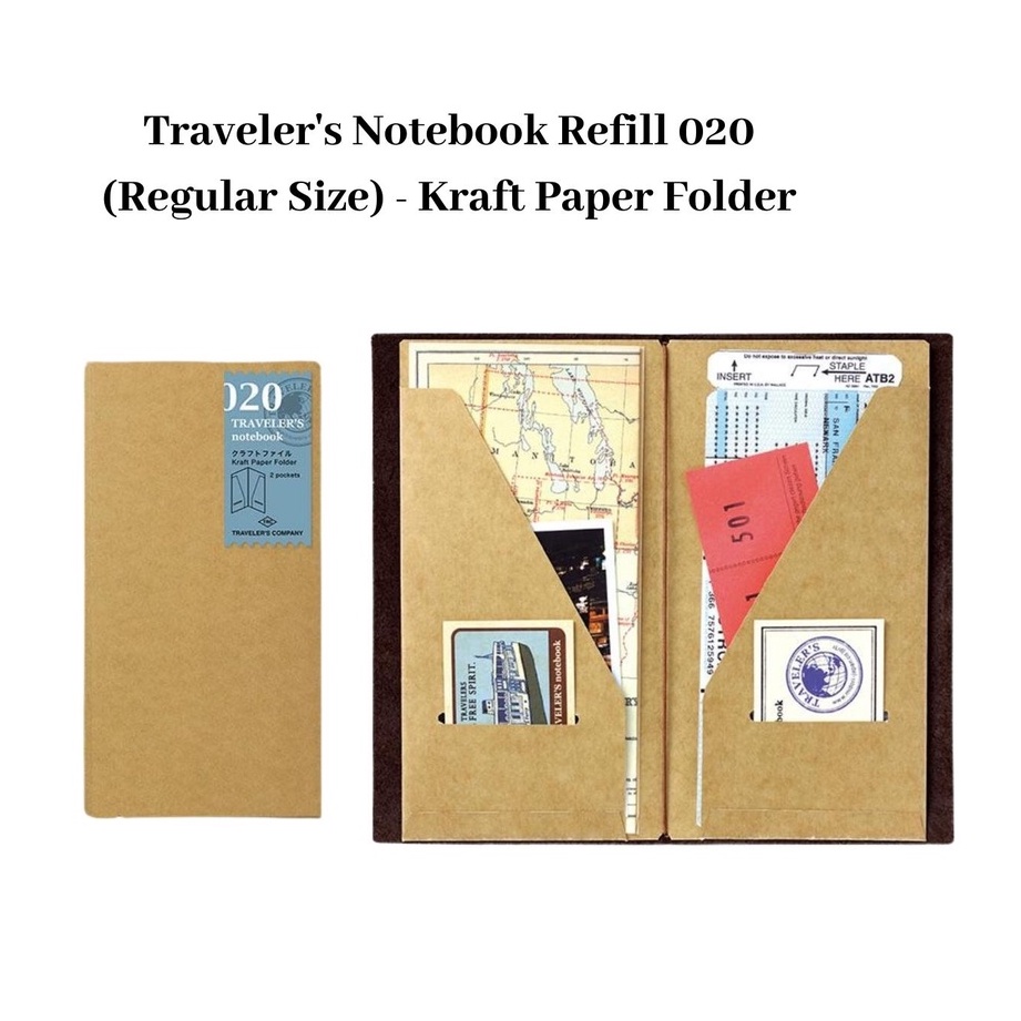 TRAVELER'S notebook Refill (Regular Size) Kraft Paper Folder, Connecting Rubber Band, Sticky Notes