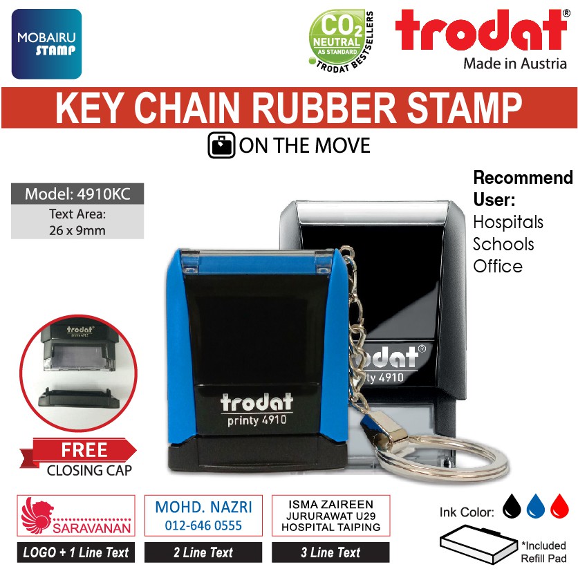 TRODAT Keychain Customized Rubber Stamps - Printy T4910KC & T4911KC [Doctor, Nurse, Teacher, Officer]