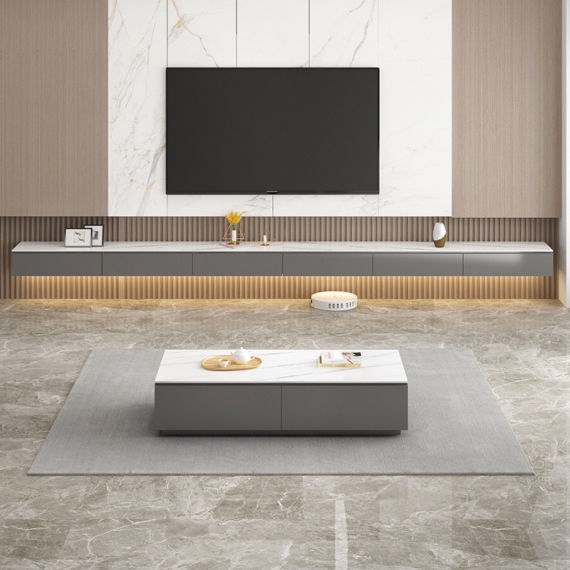 TV Console Customize Hanging Wall Mounted White Grey Sintered Stone Countertop Euro Luxury
